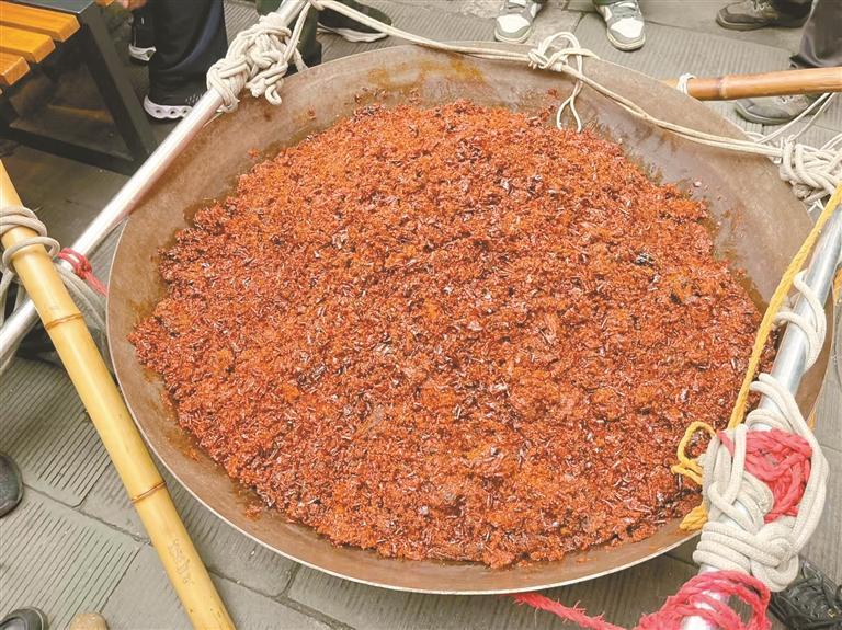 200多斤的大锅火锅底料 “第一次抬,很新奇,过程中不是特别累。”冉光辉说,他们是通过抖音私信受邀前来表演的。而参与抬锅的瞿师傅、邓师傅则坦言:“抬的过程很累,和平时工作差不多。尽管中途休息了三次,但这次经历意义非凡。” 这场仪式的背后,是新郎何智建为“力哥”规划的“第二职业”——“婚礼力哥”。何智建称,未来,他们不仅可以承担抬火锅底料等仪式表演,还可为新人挑聘礼、嫁妆,搬运宴席物资等,如同婚车一般成为婚礼迎亲的标配,为“力哥”行业注入新活力。