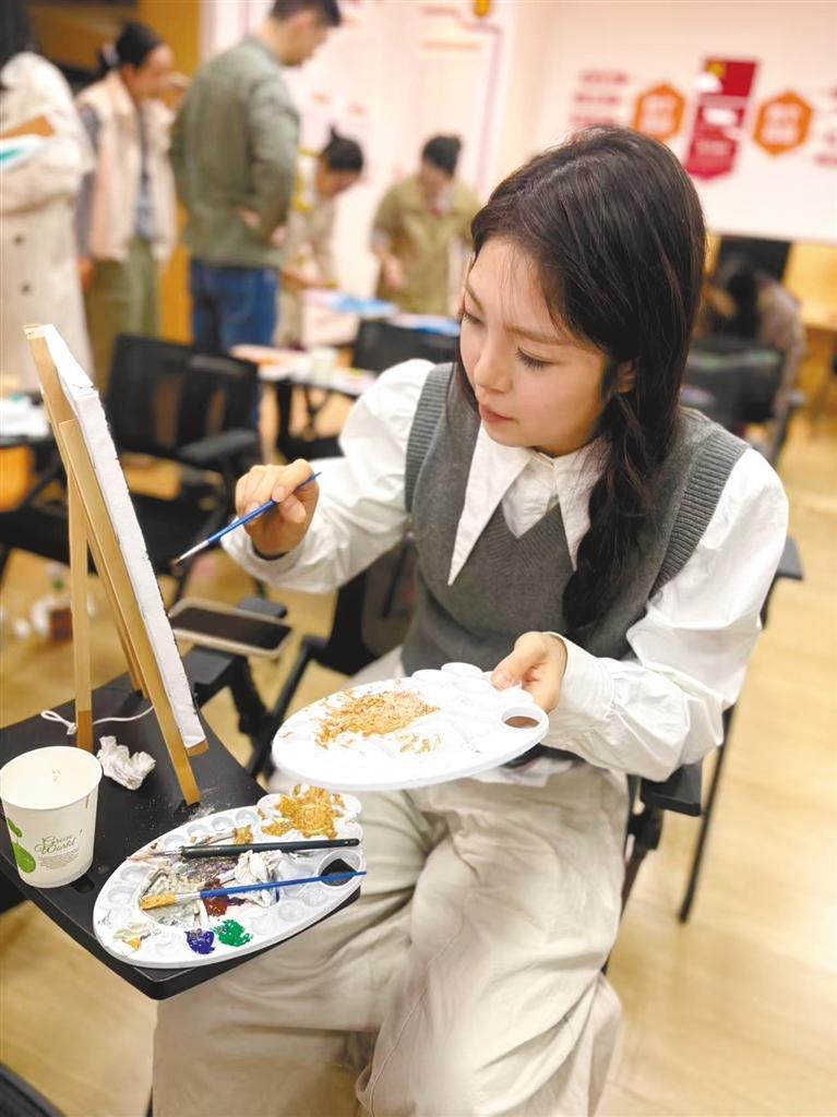 10月31日下午,一场别开生面的职工艺术沙龙在重庆北站综合楼内的学习室悄然展开。由中国铁路成都局集团有限公司重庆客运段团委主办,重庆晚报·厢遇承办的“橙C沙龙·青年夜校”系列活动之“指尖漫游·堆砌时光”肌理画艺术共创沙龙,让青年职工体验了一场触手可及的艺术之旅。