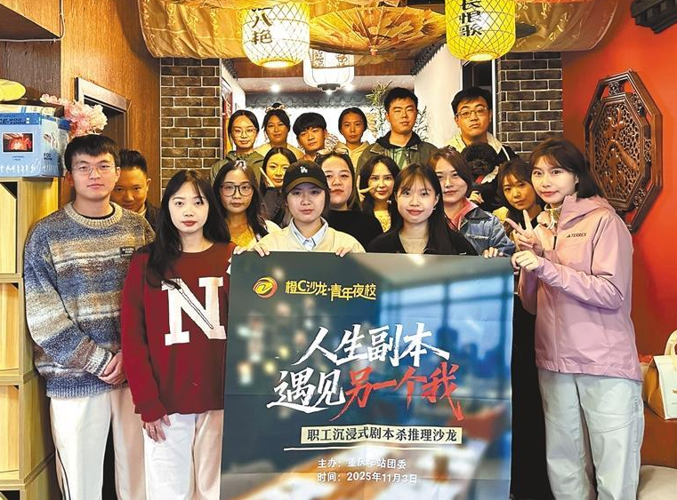 11月3日,由中国铁路成都局集团有限公司重庆车站团委主办,重庆晚报·厢遇承办的“橙C沙龙·青年夜校”系列活动之“人生副本・遇见另一个我”职工沉浸式剧本杀推理沙龙如期举行。青年职工们在角色切换与逻辑推演中,参与一场跨越时空的思维冒险。