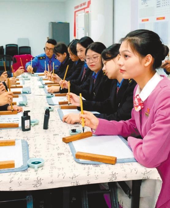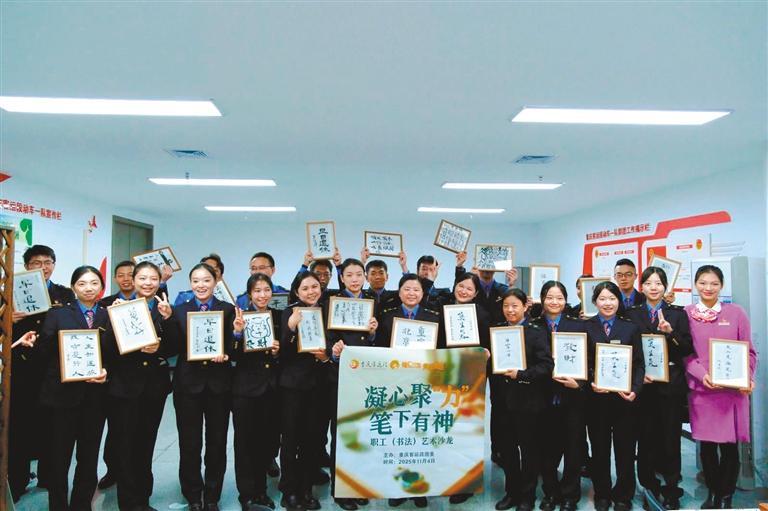 重庆客运段北京车队党总支副书记钟玉琪表示:“本次活动,首先是希望让大家感受中华优秀传统文化的魅力,在横平竖直间触摸文字的温度;第二,希望大家在习字中见山见海见自己,守住本心,在工作中适时调整心态,以沉稳应对忙碌;第三,是传递正向情绪价值,我们作为客运服务者,要把这份平和与温暖带给每一位旅客。” 笔尖轻触宣纸的沙沙声犹在耳畔,墨香浸润心田的温暖仍在延续。这场别开生面的书法沙龙,不仅让青年职工们在笔墨间寻得片刻宁静,更在团队协作中深化了彼此情谊。据悉,重庆客运段团委将继续创新文化活动形式,助力青年职工成长。