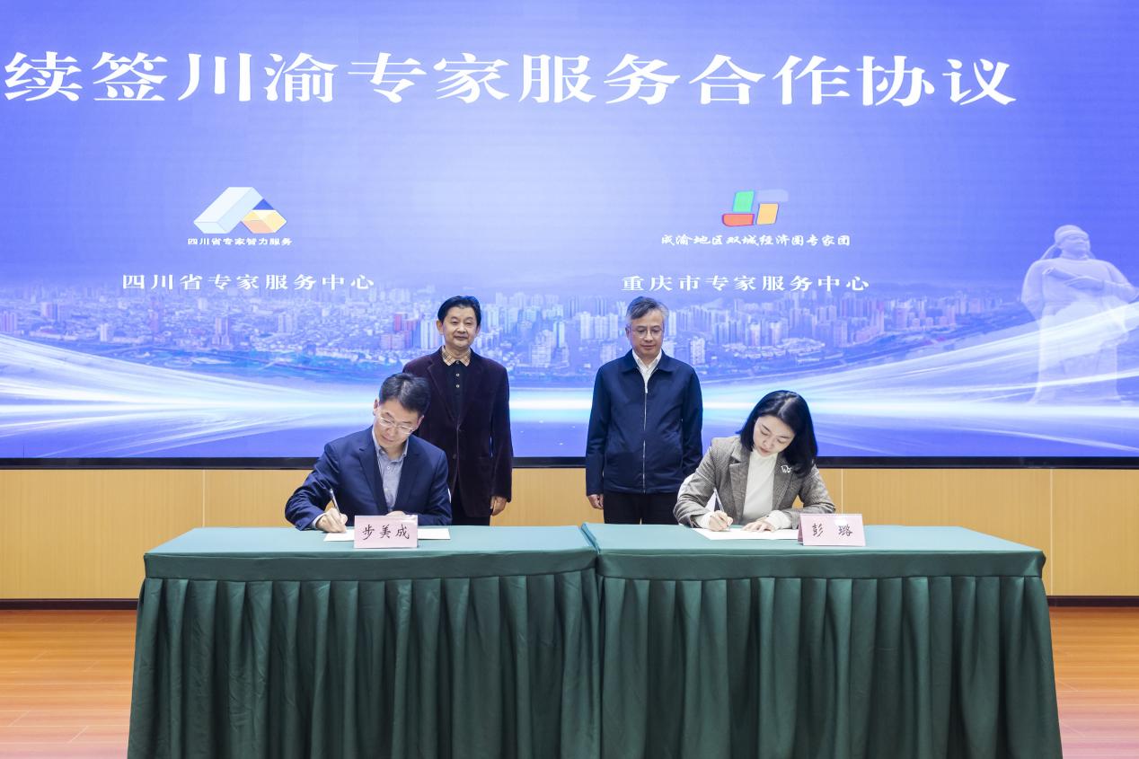 ▲四川省专家服务中心、重庆市专家服务中心续签专家服务合作协议 四川省人力资源和社会保障厅二级巡视员李健表示:“希望两地牢固树立一体化发展理念,持续推动资源共享、任务共担、品牌共建,让专家服务合作向更广领域、更深层次、更高水平迈进,唱好新时代高质量发展‘双城记’。”