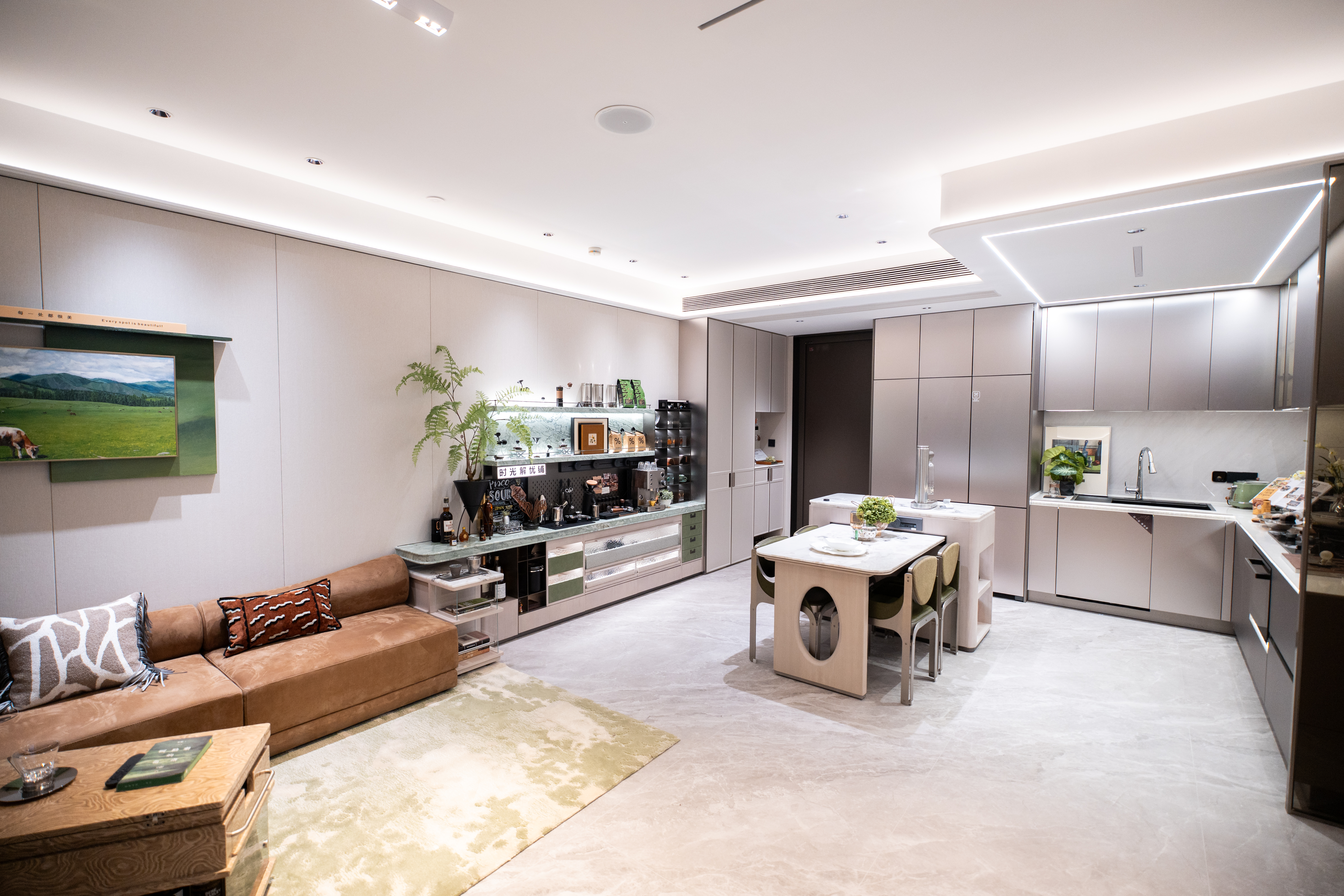 (联发样板间内的“空间折叠术”,厨房实现动线规划、极致收纳,并配备高效智能厨电。图/现场拍摄) 如何让小户型拥有更大的生活空间?联发的答案是打破边界,将生活向公区延展。一方面,以十大定制盒子聚合美邻生活、社群共建、亲子成长等场景;另一方面,通过构建完善的社区运营体系,让这些空间得以实现长期高效运营。例如,在厦门新青年社区联发·嘉悦里,除了11个公共空间外,更创新建设厦门首个SONG·青年智慧社区食堂,以智慧用餐、有机品质等体验获得了青年市民的好评…… 以科技赋能 打造潮向未来的新青年智慧社区 走进新青年好房子样板间,映入眼帘的是咖啡机器人自助服务体验,线上下单、机器臂制作、再由轮足具身机器人端送到客户手中,全程丝滑服务。人形机器人全程导览讲解,带领参观者走至室内,只需呼叫“联小智”,室内全屋灯光、家电以及可变空间等全部可自动开启,科技感直接拉满。 这背后是联发基于华为鸿蒙系统+构建的NewLiFe OS 数智底座,正逐步实现从家到社区再到城市的全维数字化覆盖。该系统具备强大的开放性与成长性,可无缝链入2800+品牌、7700+智能产品,实现跨场景联动,并支持持续进化。在社区中,智慧系统化身为“隐形管家”,通过AI安防、友好访客系统等,全天候守护并便捷居民生活。此外,联发将通过超级APP满足业主全周期客户服务,感受十大社区盒子十六大空间智慧化体验。