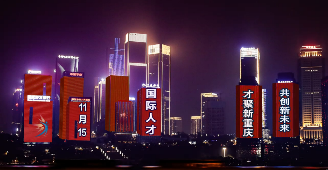 ▲效果图 紧随其后的大型无人机表演,以“才聚新重庆·共创新未来”为主题,将人才比作璀璨星辰,生动演绎了从“礼敬行业巨星”到“汇聚行业繁星”的星火征程。而在江北嘴中心商务区“沿江十屏”还将开展主题灯光秀,持续展播重庆国际人才交流大会中英文宣传语,醒目的标语与城市霓虹夜色融为一体。“无人机表演+灯光秀”以光影为笔、夜空为卷,借“星”叙事,铺陈出一幅全球人才跨越山海、汇聚重庆、共绘未来的动人长卷。这不仅是一场视觉盛宴,更是重庆以开放包容之姿、锐意创新之魂,与天下人才彼此成就、共赴未来的时代宣言。