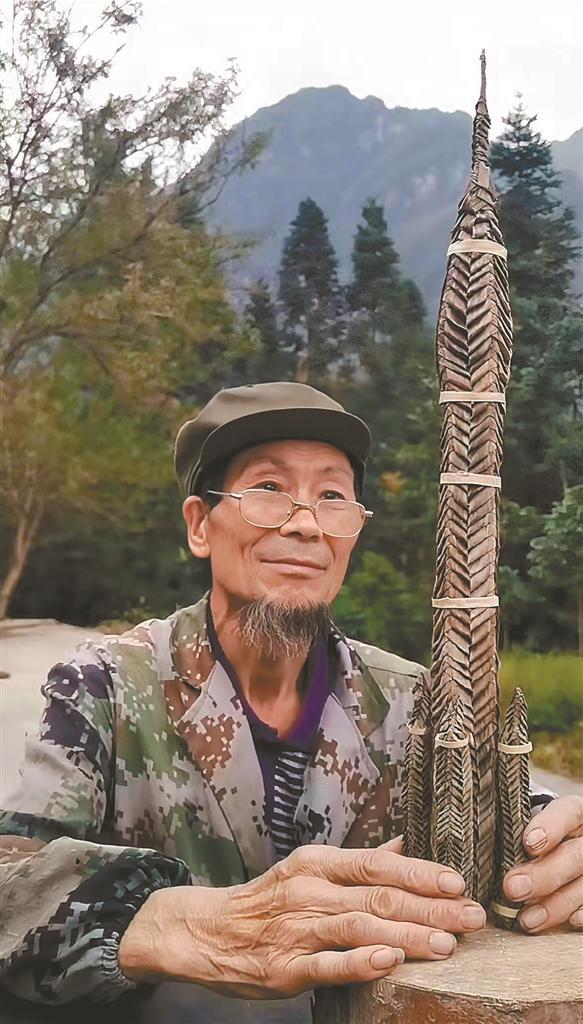 ▲余木兵与其最满意的作品《火箭》 一次偶然的机会,这门小众的传统手艺得以走向更广阔的天地。2020年,在外工作的孙女余启贵和孙女婿龙青松回到老家,看着爷爷依然每天兴致勃勃地摆弄棕叶,便随手拍了一段视频分享到网上。没想到,这条朴实的视频播放量火速攀升至二十多万,网友们纷纷留言,“爷爷的手艺太绝了”“这才是真正的非遗”。 “爷爷的手艺这么好,不应该只藏在深山里。”爷爷的意外走红,深深触动了余启贵夫妇的心,对棕编技艺的“传承梦”在他们心中悄然埋下。于是,这对年轻夫妇做了人生中一个重要决定——辞去原来的工作,全心跟随爷爷学习并推广棕编技艺,做好土家棕编传承人。 内容创作 传统与现代的完美融合 从未接触过新媒体运营的祖孙俩,开始慢慢摸索学习。在内容创作上,祖孙三人形成了明确的分工。余启贵夫妇负责选题、拍摄和剪辑,而余木兵则专注于创作、展示技艺。经过几年的沉淀,账号形成了独有的风格。