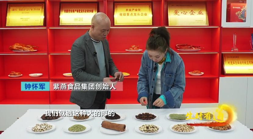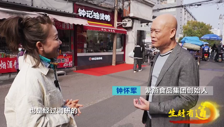 11月12日,央视财经频道《生财有道》栏目组走进紫燕食品, 用镜头回忆紫燕发展壮大、走向全国的发展历程 36年来,我们始终专注川式卤味的传承与创新, 从一家小店发展成为覆盖全国的连锁品牌, 一路走来,承载着广大顾客对我们的信任与期待。 【味启徐州,匠心开篇】 我们的故事,始于徐州老街。 在这座充满烟火气息的城市 一家名为“钟记油烫鸭”的卤味小店悄然开业 以一口醇厚地道的川味卤艺,迅速赢得街坊邻里的认可, 创始人怀着把美味传给更多人的愿景,进军南京市场。 深入调研当地饮食文化后,重新定位焕新品牌,创立“紫燕百味鸡”。
