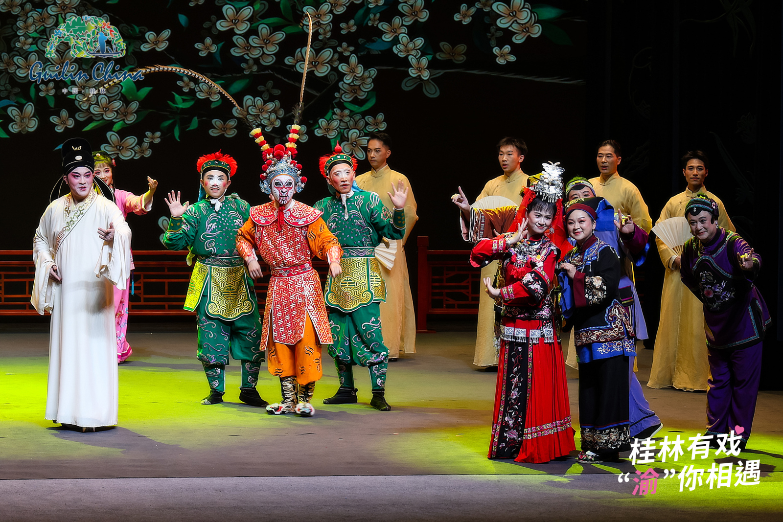 ▲2025秋冬游桂林(重庆)专场文旅推介活动”在重庆师范大学校友会堂举行 山水为幕,戏曲为媒,开启秋冬诗意之旅 集桂剧、彩调、文场等多项国家级非物质文化遗产于一体的大型沉浸式演出《桂林有戏》,于11月13日至14日在重庆师范大学校友会堂精彩上演。 该剧目首创“T型”戏曲舞台与“浸入式”观剧体验,自2017年首演以来已成功演出300余场,不仅成为中外宾客来桂必看的文化名片,更先后亮相国家大剧院、全国非遗戏曲展演等高端平台,让桂派艺术走向全国。