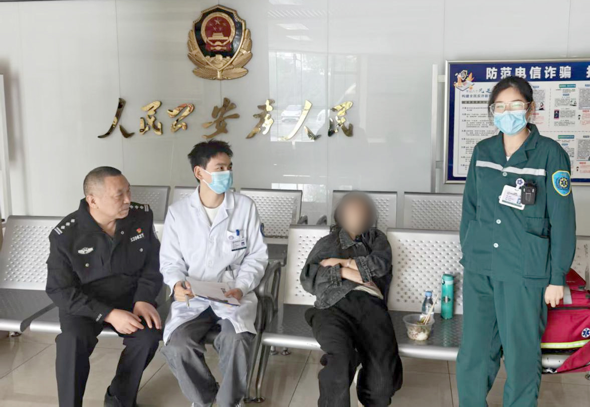 医护人员进行检查 为了帮女子找到家人,民警们分头行动,通过多方查询核实,终于联系上了刘女士的父亲。电话接通的瞬间,这位正在工地打工的父亲声音哽咽,带着抑制不住的担忧:“我早就发现女儿不对劲,可她一直不肯接我电话,我到处找都找不到……”原来,刘女士此前因工作受挫陷入抑郁,独自辗转来到这座陌生城市后,竟与家人断了联系,长期的孤独与压力让她逐渐封闭了自己。得知女儿平安无恙,父亲哽咽着说道:“能不能把她送到我这里?工地条件虽然简陋,但我能好好照顾她,再也不让她一个人了。” 傍晚,孙明钰与同事们为刘女士准备了温热的饭菜,一边看着她慢慢进食,一边耐心开导:“人生难免遇到坎儿,别一个人扛着,家人和警察都是你最坚实的依靠。”见女子虽仍少言寡语,但眼神已不再抗拒,民警们当即决定:连夜护送她前往父亲所在的工地,让这对久别重逢的父女早日团聚。