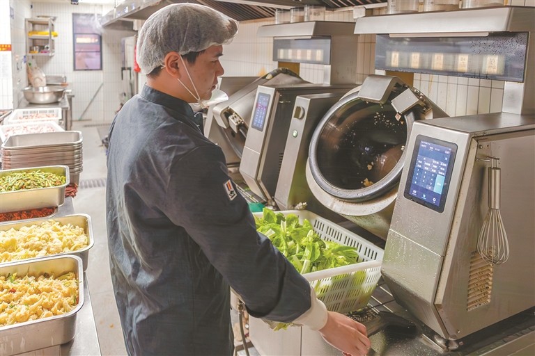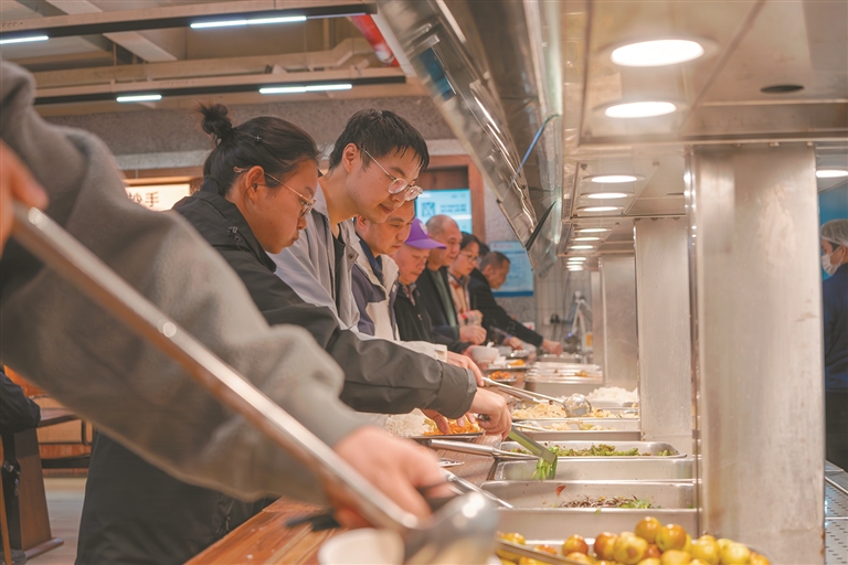 一碗“暖心饭”的烟火气如何长燃不熄?面对运营压力,一批社区食堂“各显神通”:机器人掌勺、中央厨房配送、线上卖盲盒……它们通过“自我造血”,探索从“活下去”到“活得好”的可持续发展之路。 智能降本 引入两台炒菜机器人 在九龙坡区谢家湾街道民主村这片历经城市更新的老社区里,2023年开办的社区食堂已成为服务居民的重要一环。这处500多平方米的空间由政府出资完成建设装修,并引入嘉华投资实业开发有限公司进行专业化运营。2024年,该食堂被评为重庆市百家示范老年食堂之一。 “客人涵盖老、中、青、外地游客,日均服务超1200人次。”该食堂运营负责人李恒提到,自助餐区每餐提供24个菜,银耳汤、水果沙拉免费供应,普通顾客仅需18元就能享用。该食堂另实行阶梯式补贴:社区居民每餐优惠2元;九龙坡区60岁以上老人每餐优惠3元;特困老年人每餐优惠8元;80岁以上失能、失独老人每日可免费领取12元爱心晚餐。