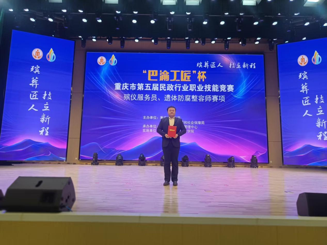 “巴渝工匠”杯重庆市民政行业职业技能竞赛李琪辉获得一等奖 从金融到殡葬,追寻更有生命温度的工作 大学时,李琪辉读的是金融专业,毕业后也曾踏入金融行业。然而,面对冰冷的电脑和数字,他总觉得“整个人都没有生命力”,于是萌生了转行的想法。“还有什么工作适合我呢?”当时的李琪辉反复问自己,因家中有亲属从事殡葬行业,在家人的影响下,他选择转行至殡葬行业,成为了一名遗体防腐整容师。 李琪辉谈起转行初期,“我接触第一具遗体时的视觉和味觉冲击让我极其不适应,但这并没有让我退缩,反而有种使命在身的感觉。慢慢地接触得多了就能用平常心看待每一种遗体状况。”李琪辉说,“尊重每一位逝者,是我们入殓师的必修课。”从最初的忐忑到如今的从容,他用了六年时间,完成了从“金融人”到“生命匠人”的蜕变。 从技术上求精湛,在细微处藏尊重 遗体防腐整容不仅是技术活,更是“心”的修行。李琪辉深知,每一针缝合、每一次塑形,都关乎逝者的尊严和家属的慰藉。他曾遇到一位长期卧病离世的老人,在前期与家属沟通后,了解到他们希望能尽可能恢复老人生前温和的面容。李琪辉要来了许多老人生前不同角度的照片,一个人对照片观察了好几天,才有了该如何修复的思路。他对照着老人生前神态安详、面容和蔼的照片,一点点填补皮肤凹陷,细致勾勒皱纹,甚至还原了老人嘴角习惯性的笑意。当将修复后的逝者遗体推还给家属时,家属的眼泪夺眶而出,语带哽咽地致谢:“谢谢你!这就是我爸平时的样子。” 这样的案例,在李琪辉的工作中并不少见。并非科班出身的他,为了让每一位逝者体面告别,他经常独自使用训练道具,反复练习缝合、塑形、化妆,翻阅前辈笔记,查阅行业领先知识,记录总结个性化方案,甚至自制“秘诀本”精进技艺。他常说:“我们面对的是逝者,但服务的其实是生者。” 从赛场淬炼技艺,在荣誉背后是使命 今年,李琪辉首次参加“巴渝工匠”杯重庆市民政行业职业技能竞赛,凭借扎实的技术和沉稳的发挥,一举夺得遗体防腐整容赛项一等奖。比赛中,他面对“面部重度损伤”的模拟遗体,冷静修复眉骨凹陷、鼻翼缺损和嘴角撕裂,每一步都精准而细致。不仅证明了自己,更征服了裁判。