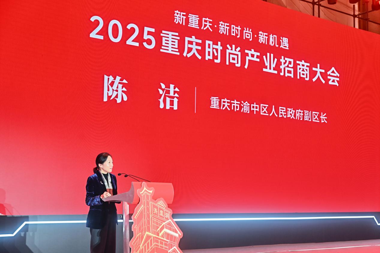 重庆市渝中区人民政府副区长陈洁在致辞中表示,立足渝中作为重庆“都市极核”的定位,广邀“城市合伙人”。陈洁表示,渝中已构建千亿级服务业集群,汇聚万亿级金融资产,培育了包括4家百亿级、29家十亿级、127家亿元级企业在内的产业矩阵,为时尚产业发展提供了丰沃土壤和强劲动能。渝中将重点推出新华中心等12个优质时尚产业项目,深化建设解放碑千亿级商圈,大坪、化龙桥百亿级商圈等时尚产业聚集区。