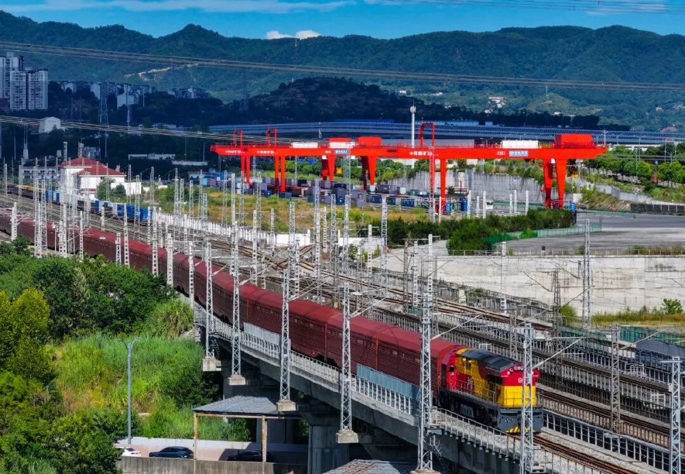 ▲8月20日,作为西部陆海新通道、中欧班列(成渝)、长江黄金水道三大国际物流通道重要物流节点和联结点的鱼嘴站,一片繁忙。记者 龙帆摄/视觉重庆