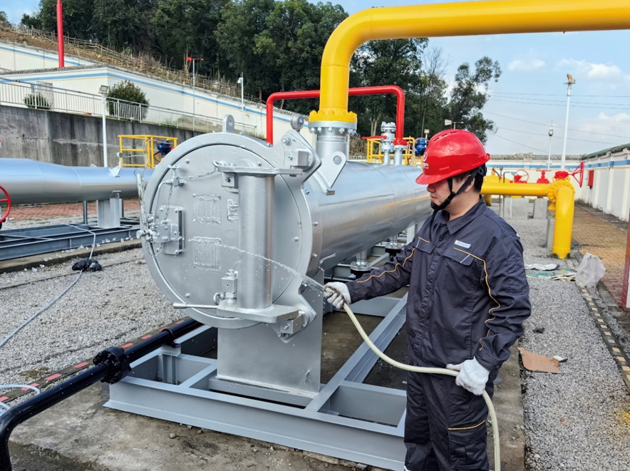 从储配站到居民厨房,从城区梯坎到乡村田埂,这些奔波的身影没有豪言壮语,却用每一步巡查、每一句叮嘱,守住了山城的燃气安全。 自秋初起,一场覆盖所有关键场站和管网的“深度体检”全面展开。重庆燃气早早就给各类设备做了“冬前体检”,确保寒潮来临前,将安全可靠送达千家万户。 深度体检,设备不“带病”过冬 虎溪站作为重要接气门站,冬季用气高峰时,日供气量约占中心城区供气总量1/3,师傅们已提前完成调压器维护保养、旋风分离器清掏和过滤器清洗,有效保障气质清洁,从源头保障设备平稳运行。渝润公司能源站里,师傅们正对锅炉、换热器做拆解检查——清积垢、换老化零件,连循环泵螺丝都拧得稳稳的:“这些是供暖‘心脏’,一点毛病都不能有。”