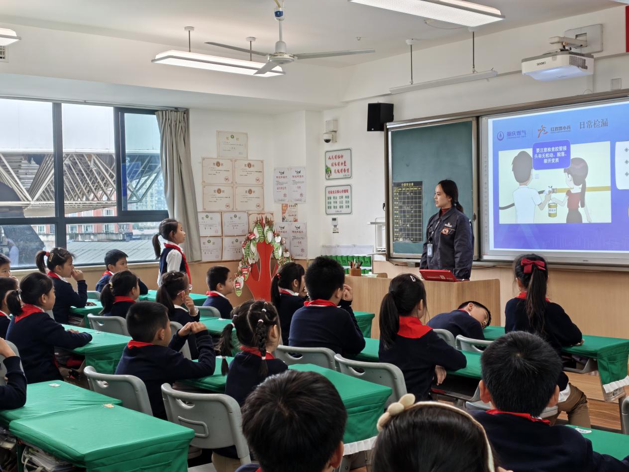 “天然气为什么有臭味?”“发现燃气泄漏第一步该做什么?”在树人小学三年级五班的教室里,一个个贴近生活的问题,引发了孩子们的热烈讨论。讲台上,来自沙坪坝公司团组织的青年员工化身“燃气老师”,他们通过精心准备的动画视频、互动游戏,将枯燥的燃气知识变得生动有趣。 课堂上,分公司团支部团员张释月教会孩子们“怎么识读燃气表指数”,将抽象的知识转化为看得见、听得懂的生活常识。互动环节中,孩子们踊跃举手,争相回答,现场气氛十分活跃。每一位勇敢发言的小朋友都获得了精心准备的卡通卡套作为鼓励,青春的亲和力与孩子们纯真的笑脸交织成一幅温暖的画面。 “五进”延伸,小小义务宣传员“安”至万家 理论课程结束后,活动进入了庄严的“聘任”仪式。重庆燃气集团工作人员向班级里的每一位小朋友都发放了特制的“红岩燃小兵”义务宣传员贴纸和图文并茂的 《燃气安全指南》 手册,鼓励孩子们将课堂上所学到的知识带回家,争当家庭燃气安全的小小宣传员和监督员。 “我们希望通过一个孩子,带动一个家庭,从而影响整个社会,让安全的种子在家庭和社会中生根发芽。”张释月老师说,“这正是我们开展‘五进’活动的初衷——主动走出去,将贴心的服务和安全理念,精准送达至客户群体身边。” 当天,为确保校园用气安全万无一失,汉渝路客户服务中心的非居安检员与维修人员,对学校食堂的燃气设施进行了一次全面的“体检”。他们用专业的技能和细致的检查,默默守护着校园后厨的用气安全。