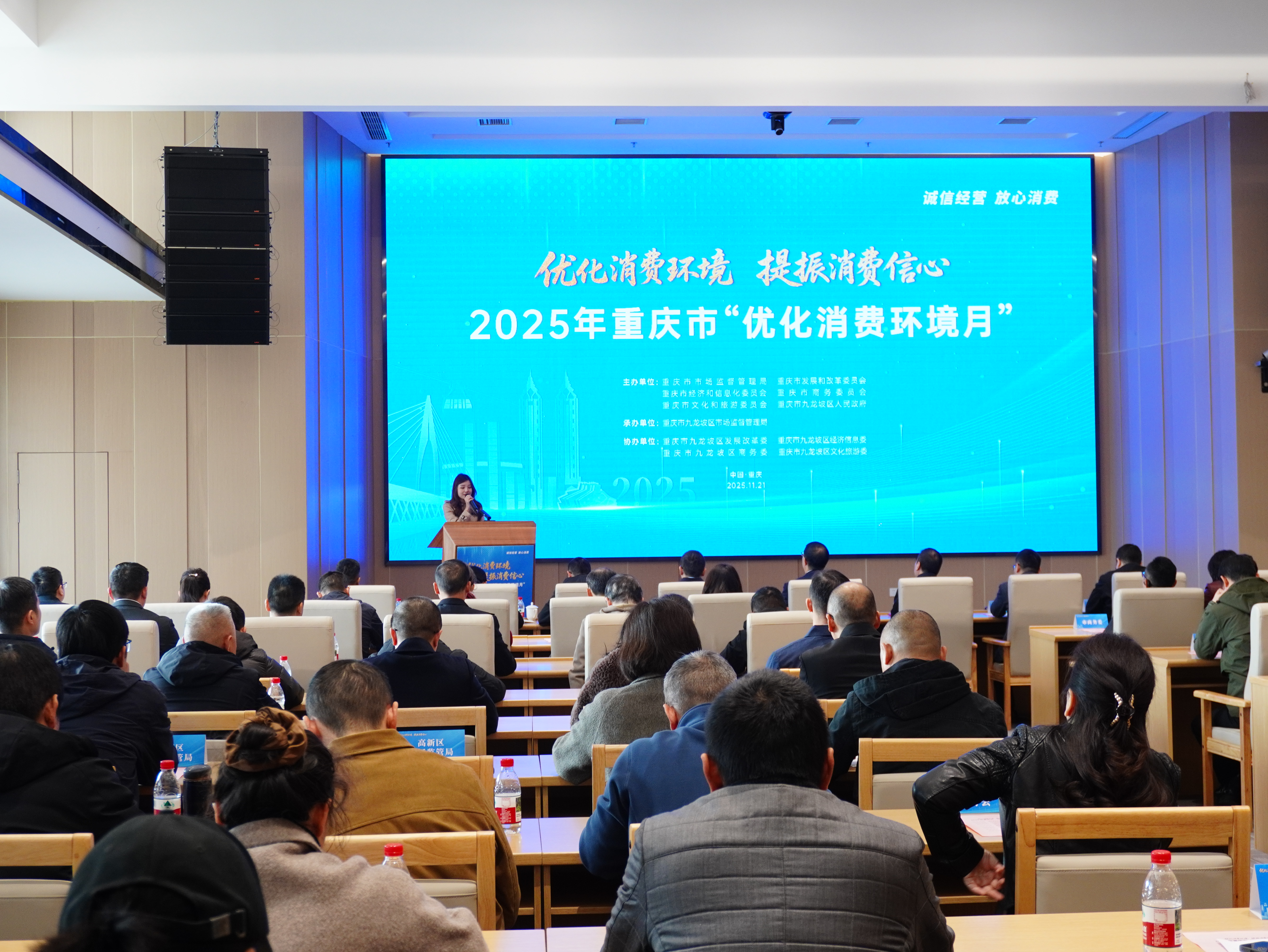 11月21日,2025年重庆市“优化消费环境月”主场活动在九龙坡区举行。本次活动由市市场监管局、市发展改革委、市经济信息委、市商务委、市文化旅游委和九龙坡区人民政府联合举办,九龙坡区市场监管局承办。参加主场活动的有市级有关部门和单位、中心城区各市场监管局、成都市成华区市场监管局、九龙坡区有关部门和单位、行业协会和企业代表、消费维权志愿者代表等。