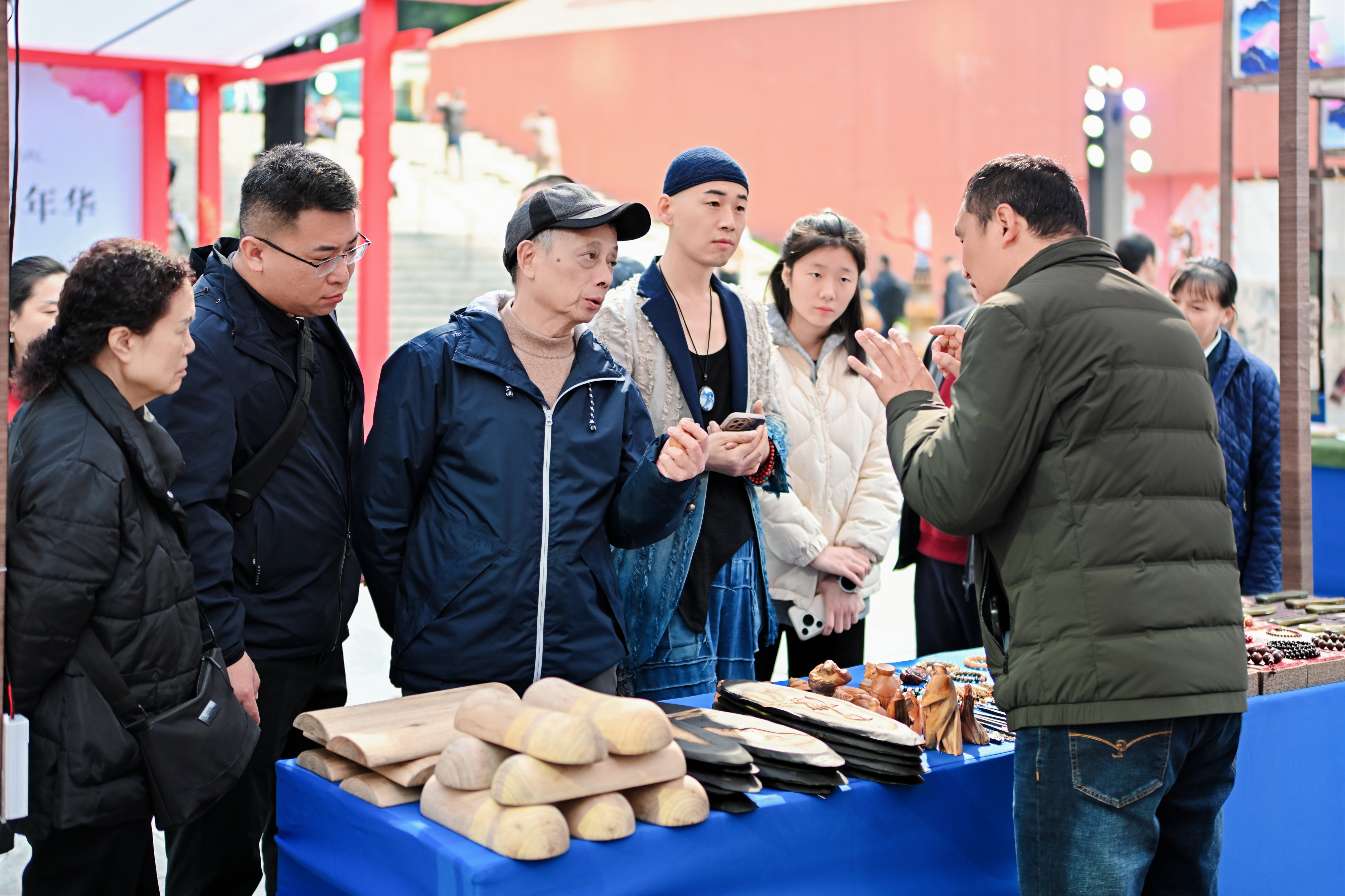 梁平竹雕的非遗竹作、志强乌木馆的乌木雕刻,将自然材质与匠心工艺完美结合;璧山覃文东的非遗核雕,在方寸核仁上勾勒大千世界,“微雕艺术”的精湛令人叹服;巫溪的桃木龙凤梳,以精巧的尺寸,成为兼具实用性与收藏价值的生活艺术品。此外,还有草本养生饰品、瓷器、珠宝、木雕、铜制工艺品等多元品类,琳琅满目,沉浸式逛展乐趣十足。 立体联动 线下交流与线上体验同步 值得一提的是,现场还特邀重庆书画名家、青年艺术家与市民进行交流,将展览、鉴赏、交易、互动融为一体。不仅有收藏专家为市民游客科普艺术品知识,还有青年艺术家现场创作,市民可近距离观摩艺术诞生过程,感受新生代艺术力量的创意与活力。