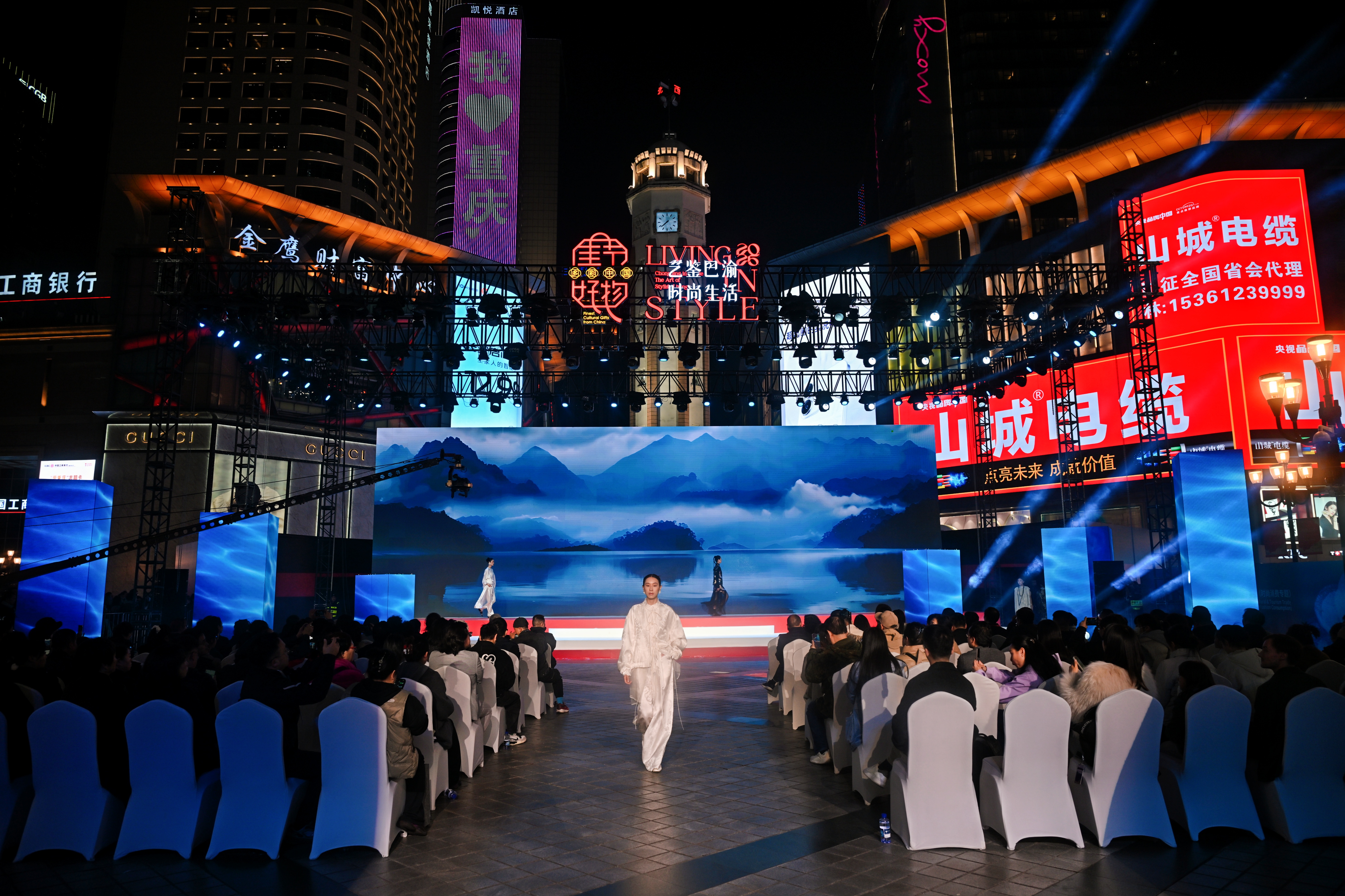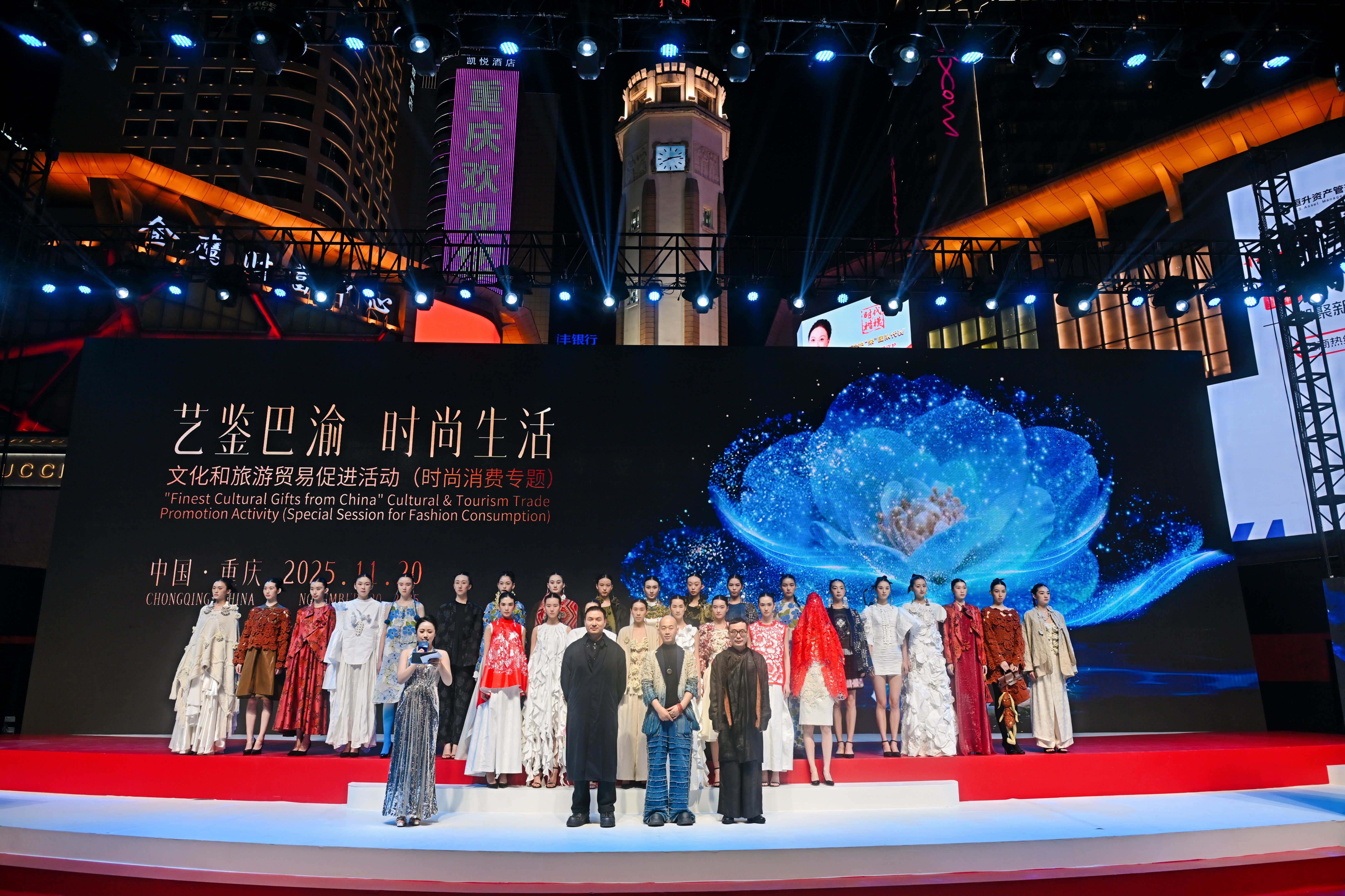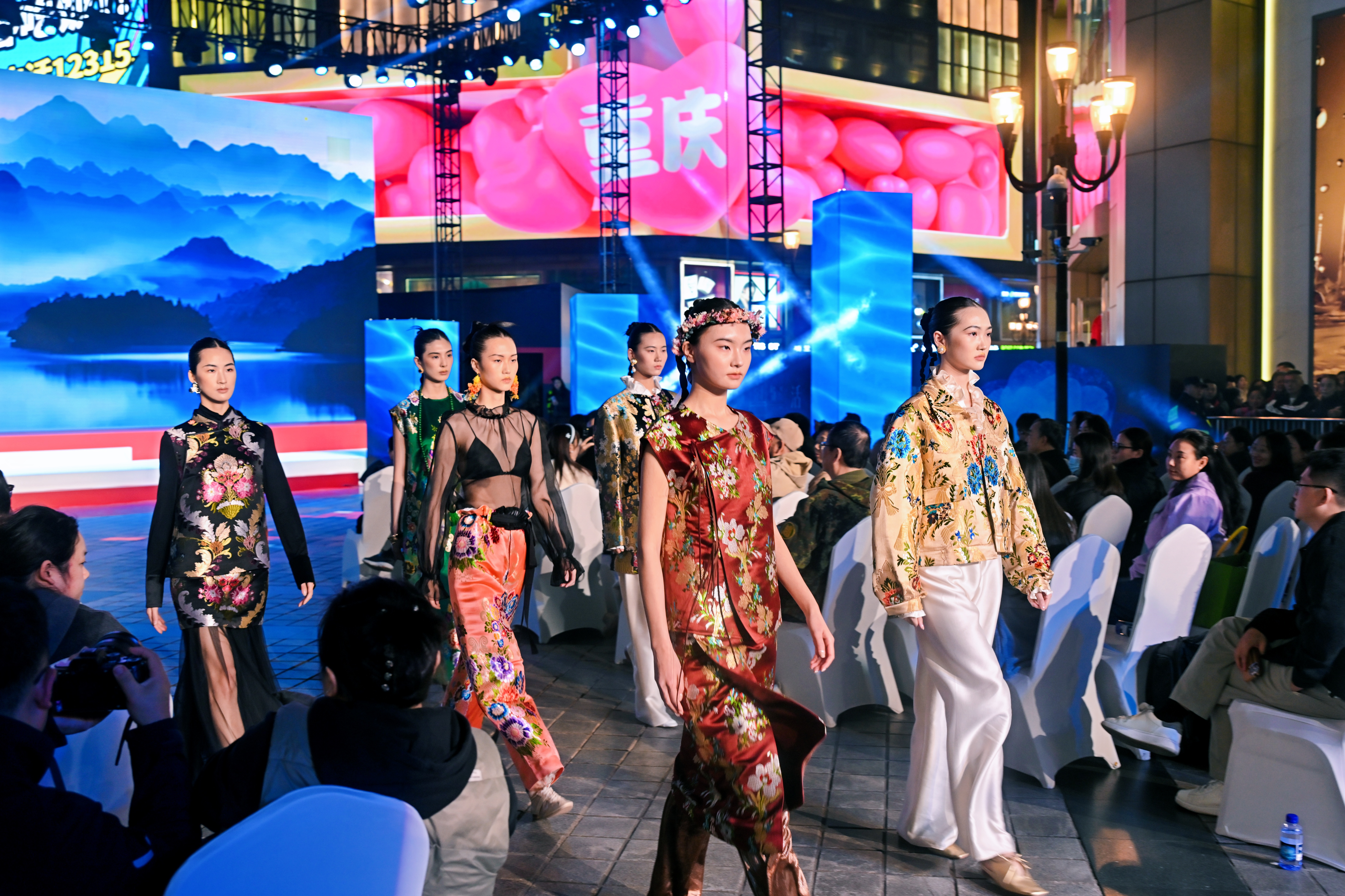 11月20日晚,“多彩中国 佳节好物”文化和旅游贸易促进活动(时尚消费专题)的系列活动“艺鉴巴渝 时尚生活”时尚首秀,在渝中区解放碑CBD精彩上演,以非遗技艺与当代设计的碰撞,为市民游客呈现了一场兼具视觉冲击与文化深度的美学盛宴。 本次大秀通过“雄奇山水”“非遗织梦”“渝味本色”三大篇章为主线,从山水都市的意境呈现,到非遗技艺的古法传承,再到烟火人间的色彩绚丽,深度诠释重庆的多元文化基因。