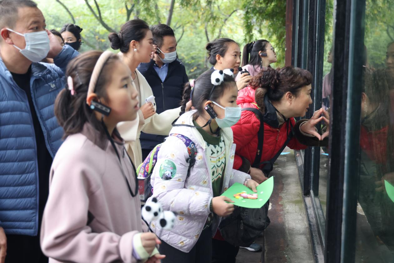 随后,大家在重庆动物园动物科普老师王维带领下,解锁了黑叶猴、川金丝猴等国家一级保护动物。 “黑叶猴的幼崽是金黄色的,四个月后毛发才会逐渐变黑,还有着标志性的‘莫西干发型’!”王维的讲解,深深吸引了大家。