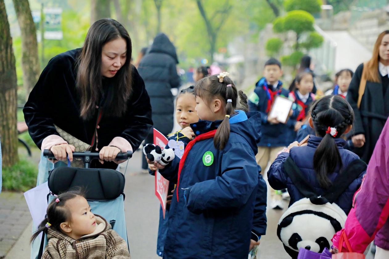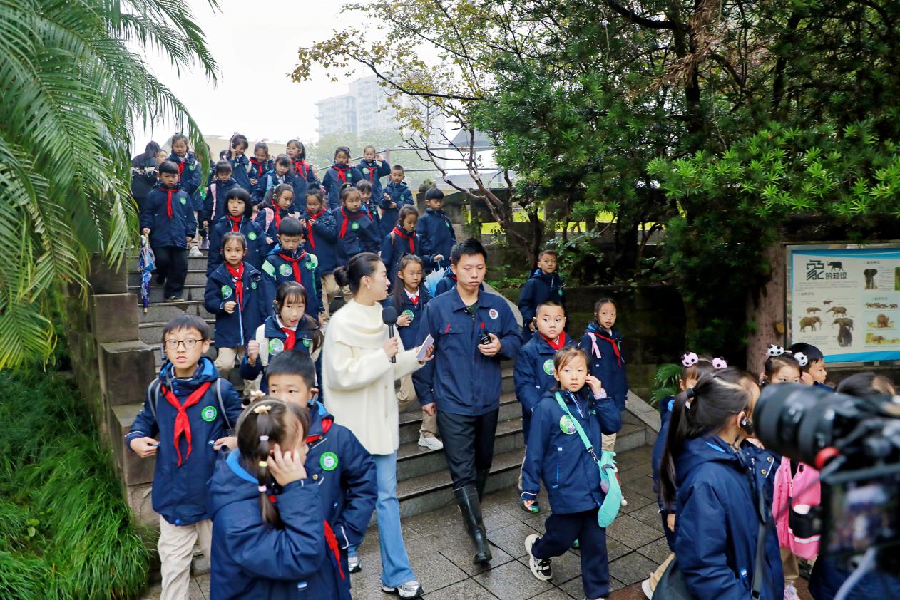 大象的鼻子为什么那么长?长颈鹿为啥长那么高?如何分辨雌雄梅花鹿? 11月22日,重庆市沙坪坝区歌乐山小学的同学们怀揣着对动物世界的好奇与对流浪小动物的关爱,走进重庆动物园,开启了一场“云捐赠·一元爱”主题活动。