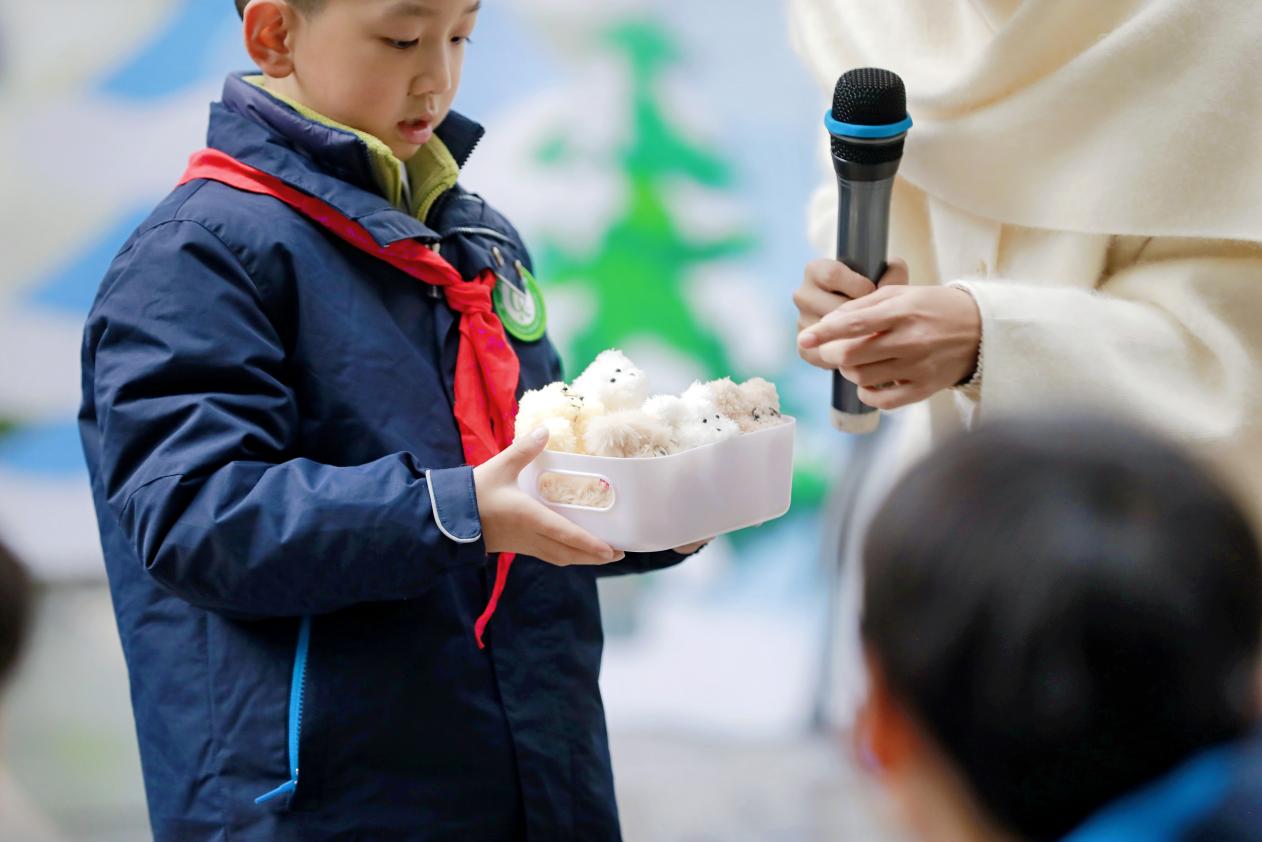 让“关爱动物、守护自然”的理念 深入小小的心田 科普探索结束后,爱心义卖环节正式开启。 同学们纷纷拿出精心准备的手工作品,有耗时三天完成的熊猫剪纸,有戴着时髦眼镜的小狗摆件……每一件作品都充满创意与心意。