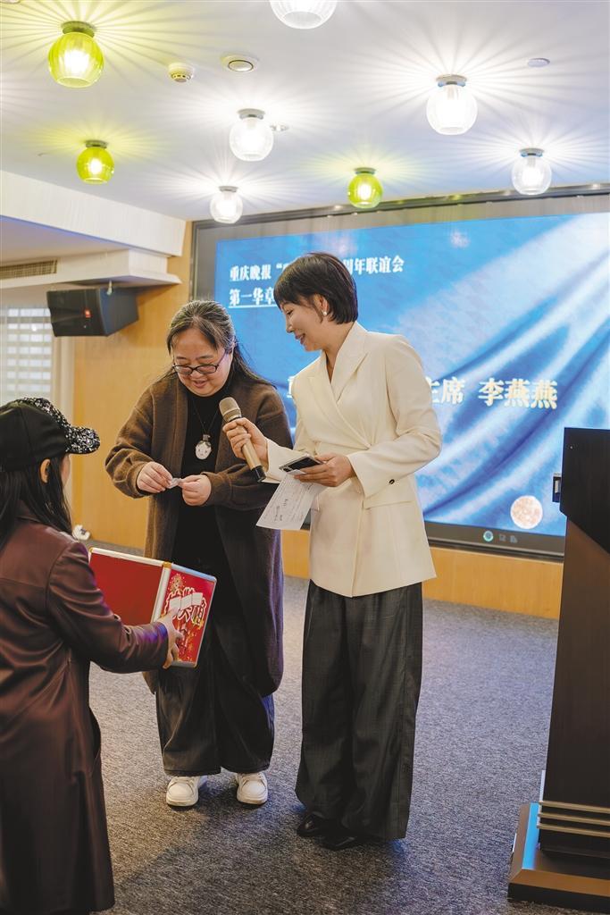 ▲重庆市作家协会副主席 李燕燕现场抽奖,赠送自己出的书。