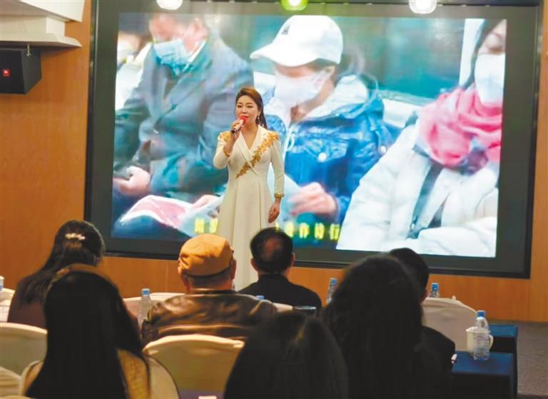 ▲《夜雨荟群英》MV发布,市曲艺团青年女歌唱家王洁现场演唱。