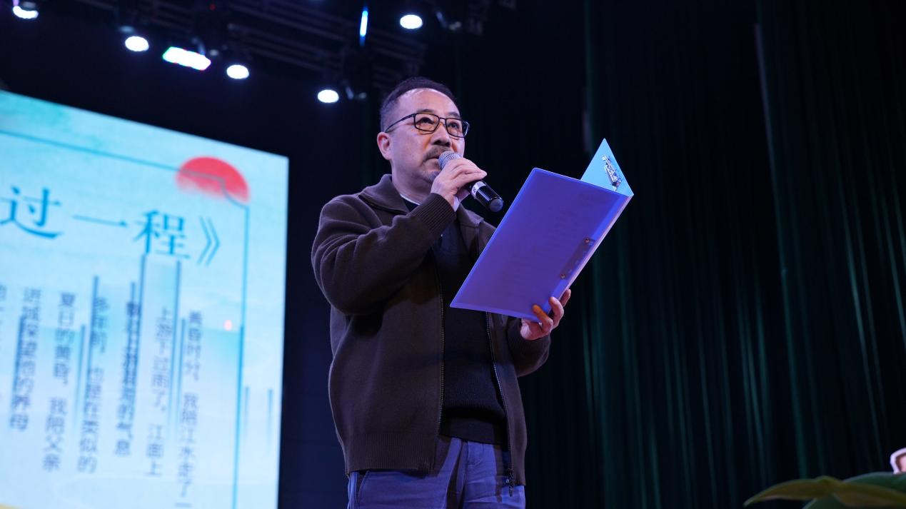 (《2025行知诗卷》) 校园诗篇未完待续 著名诗人、评论家、《诗刊》社副主编霍俊明从北京专程前来,他在舞台上朗诵了代表作之一《站在砖墙上的父亲》。从湖北到来的著名诗人、鲁迅文学奖得主、湖北省作协副主席张执浩,则以深沉动人的声音朗诵《我陪江水走过一程》,为现场带来了浓郁的诗意氛围。他们的到来,为校园文化活动注入了专业的视野与格局。