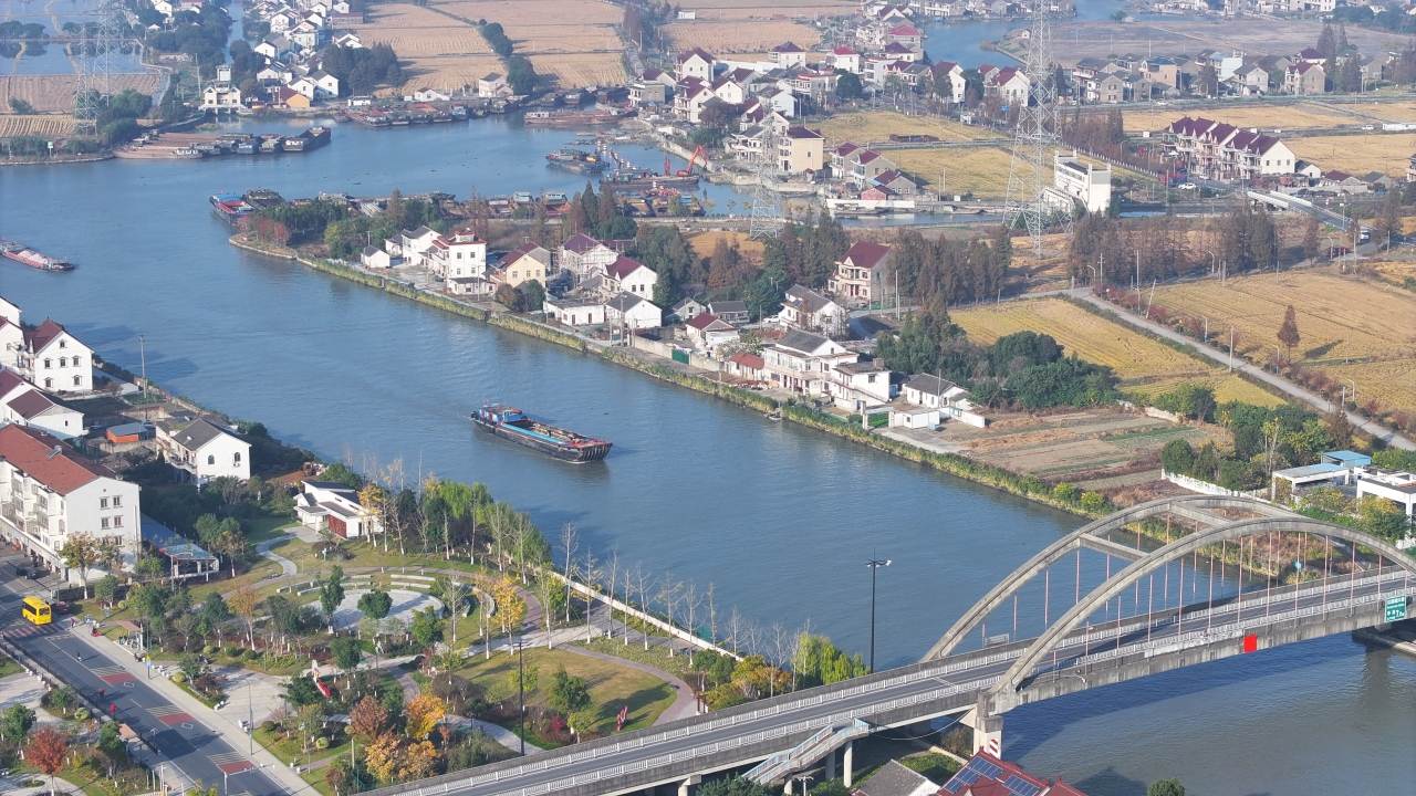 清晨,当冬日和煦的阳光洒在嘉善县红旗塘的河道中,满载货物的货轮正在缓缓驶过通航净高7米的红旗塘大桥,船上的货物将被送到位于嘉兴港乍浦港区,再通过远洋巨轮,送往全球各地;同一时间,在杭州湾畔的嘉兴港乍浦港区,龙门吊正在将一个个五彩的集装箱精准抓起,稳稳放上即将启航的远洋巨轮,而另一边,伸抓自如的卸船机也在忙碌地卸载货物。 物流“河海接力”链接全球,这背后,是嘉兴市深入推进“海河联运”的成果。 以往,由于航道等级较低和桥梁通航净高不足,嘉兴内河航运受到了极大的限制。近年来,嘉兴充分利用区位优势,提高内河航道通航条件、改善外海进港航道,积极推进“公转水”“散改集”,锻造交通运输的长期增长动力和发展优势,集装箱“海河联运”迈入发展快车道,推动嘉兴经济高质量发展开启新的篇章。