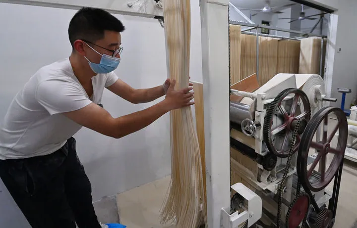 ▲这是11月4日在云阳早面餐厅拍摄的炸酱面。新华社记者 肖潇 摄 让年轻人觉得“做面也体面” 作为面业协会会长,“面二代”的代表黄兆明很清楚云阳面业的短板,比如“断代问题”。 “面一代”“面二代”当年不得不干这行,他们“多数不希望孩子再做面条”,觉得做面条“一身面灰”,生活轨迹是“三点一线”,连朋友请吃饭都得拒绝,因为每天都要起早干活。 云阳户籍人口133万,做面条的就有20多万人,占总人口的近1/6,占劳动力的比例更高。这个产业不能丢,还要持续发展,当前关键是要解决“断代问题”——怎么让年轻人愿意接手?唯一的办法就是“解放生产力”,让做面条不再那么辛苦,同时还能赚到钱。目前,云阳面在推广“统产分销”模式,面条生产交给大工厂集中做,原来的门店改成销售中心、体验中心,“像个小商超一样”。 这样一来,从业者不用再天天面灰沾满衣服;工厂统一生产,大家按股份分成,成立合作联社,一个城市一个联合社,形成良性经营的共同体。