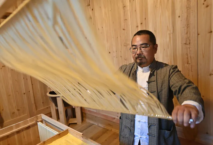 ▲11月5日,喜禾麦面业创始人宋喜在重庆市云阳县喜禾麦面业的标准作坊制作面条。新华社记者 肖潇 摄 在云阳县城,1989年出生的嘉禾麦面业主理人宋喜算是“面三代”。大学毕业后,宋喜在三峡银行做了8年信贷员,2022年毅然辞职创业,与父亲一起成了做面人。回顾当初的选择,宋喜认为自己的选择是对的,“做面条是长期性行业,只要口碑好、品质稳定,时间越长客户越多”。 宋喜说:“我特别认可国家对食品管理的严谨态度,我现在也是朝着这个方向努力。我做的面条至少比普通面条贵一倍,主打对生活品质有更高要求的私域客户,因为原材料好,成本自然高。现在每天成品也就300斤左右,达不到量产,所以还没有涉足电商。”