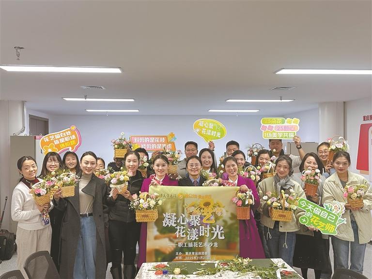 活动伊始,专业教练围绕安全驾驶展开细致讲解——从头盔、护颈的规范佩戴,到赛道规则、弯道超车禁忌,再到油门与刹车的精准控制,每一个细节都讲解得深入浅出。青年职工认真聆听,积极提问,在互动答疑中夯实安全驾驶基础。 随着装备穿戴整齐,引擎声渐起,青年职工们化身“极速车手”,在赛道上挥洒青春风采。实操练习环节,大家分组上场,教练全程指导,实时纠正动作,帮助职工快速掌握“外-内-外”过弯技巧,从生涩到熟练,一步步驾驭卡丁车的节奏。 随后的“团队接力赛”将现场氛围推向高潮。五人一组,击掌接力,不仅比拼速度,更考验默契与协作。队员们相互鼓励、及时传递赛道心得,每一次完美过弯、每一次顺利交接,都引来阵阵欢呼与掌声。 活动中,重庆车站团委负责人表示:“我们希望通过这类新颖有趣的体验活动,帮助职工在忙碌工作之余放松身心、学习技能,同时也搭建起青年职工之间交流互动、凝聚力量的平台,真正实现‘在玩中学、在学中乐、在乐中聚’。” 本次活动将专业驾驶教学与趣味竞技相结合,既有速度与激情的释放,也有团队协作的升温。最终,教练根据比赛成绩评选出“最快圈速”与“最佳协作团队”,全体参与职工合影留念,为这场充满活力与温度的卡丁车之旅画下圆满句号。重庆晚报-厢遇记者 蒋婷 插花艺术沙龙 以花为媒,以艺聚心。11月21日下午,重庆西站动车四队学习室内花香氤氲、笑语盈盈,由中国铁路成都局集团有限公司重庆客运段团委主办的“凝心聚‘艺’·花漾时光”职工插花艺术沙龙在此温馨启幕。25名职工暂别繁忙工作,在花艺师的指导下,以指尖绽放创意,用协作凝聚温情,共同完成了一场美学与团队的双重盛宴。