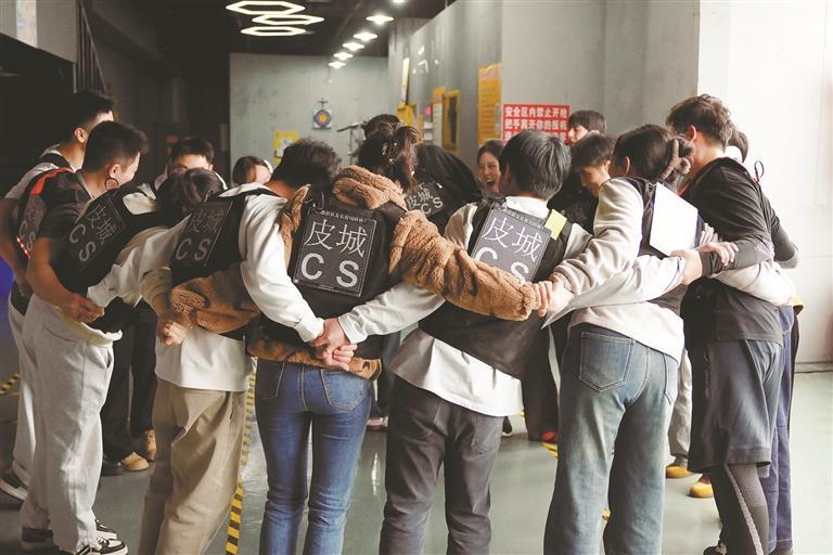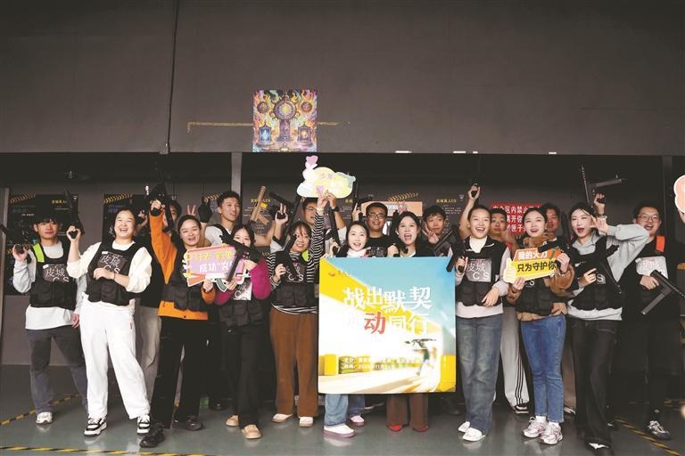 实践环节中,职工们领取定制花材包,跟随花艺师示范,从斜剪法、去叶技巧到高低层次搭配,逐步掌握插花核心技法。个人创作后,职工们以小组为单位完成团队桌花,在交流中碰撞灵感,在协作中深化默契,将五支不同花材的渐变过渡,演绎成“五瓣同心”的协作真谛。 成果展示环节,个人作品与团队桌花错落陈列。职工们手持作品分享创作思路:“我用了对比色突出层次感,就像服务中要区分主次需求”“团队桌花以向日葵为中心,象征凝聚力量,外围配花代表各岗位的支撑……”每一束花都承载着对美的理解,更蕴含对团队协作的感悟。活动尾声,职工们手持作品合影留念,镜头定格下专属的花艺时光与温暖笑容,将这份芬芳记忆镌刻成团队共同的珍贵印记。 未来,重庆客运段团委将持续探索“艺术+职场”创新模式,让更多职工在文化滋养中提升服务温度,在团队协作中绽放职业光彩。重庆晚报-厢遇记者 舒凡雪 CS交友赛 11月24日,由中国铁路成都局集团有限公司重庆客运段团委、工会联合主办的“战出默契·心动同行”CS主题青年联谊活动在皮城真人CS(来福士店)上演。