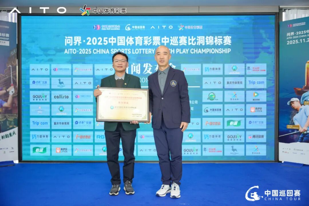 重庆佰富江景高尔夫俱乐部总经理陈史生 重庆佰富江景高尔夫俱乐部总经理陈史生随后介绍了筹备情况。他表示,球会结合往届办赛经验,针对比洞赛“瞬息万变”的特点,对果岭速度、球道起伏以及障碍区策略进行了精细化打磨与优化。目前球场已处于最佳状态,静待高手对决。问界·2025中国体育彩票中巡赛比洞锦标赛不仅是一场竞技盛宴,更是多方合力推动体育产业发展的结晶。 发布会上,中高协分别向承办球场重庆佰富江景高尔夫俱乐部和冠名赞助商问界颁发了纪念牌匾,以表彰其对中国高尔夫球运动发展的卓越贡献。