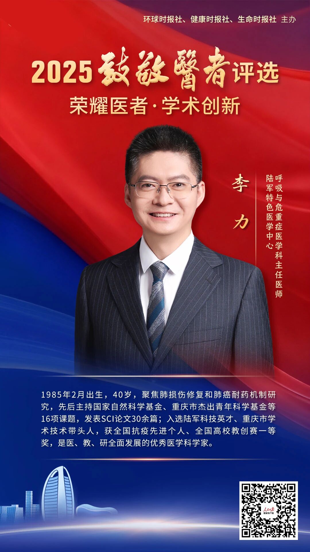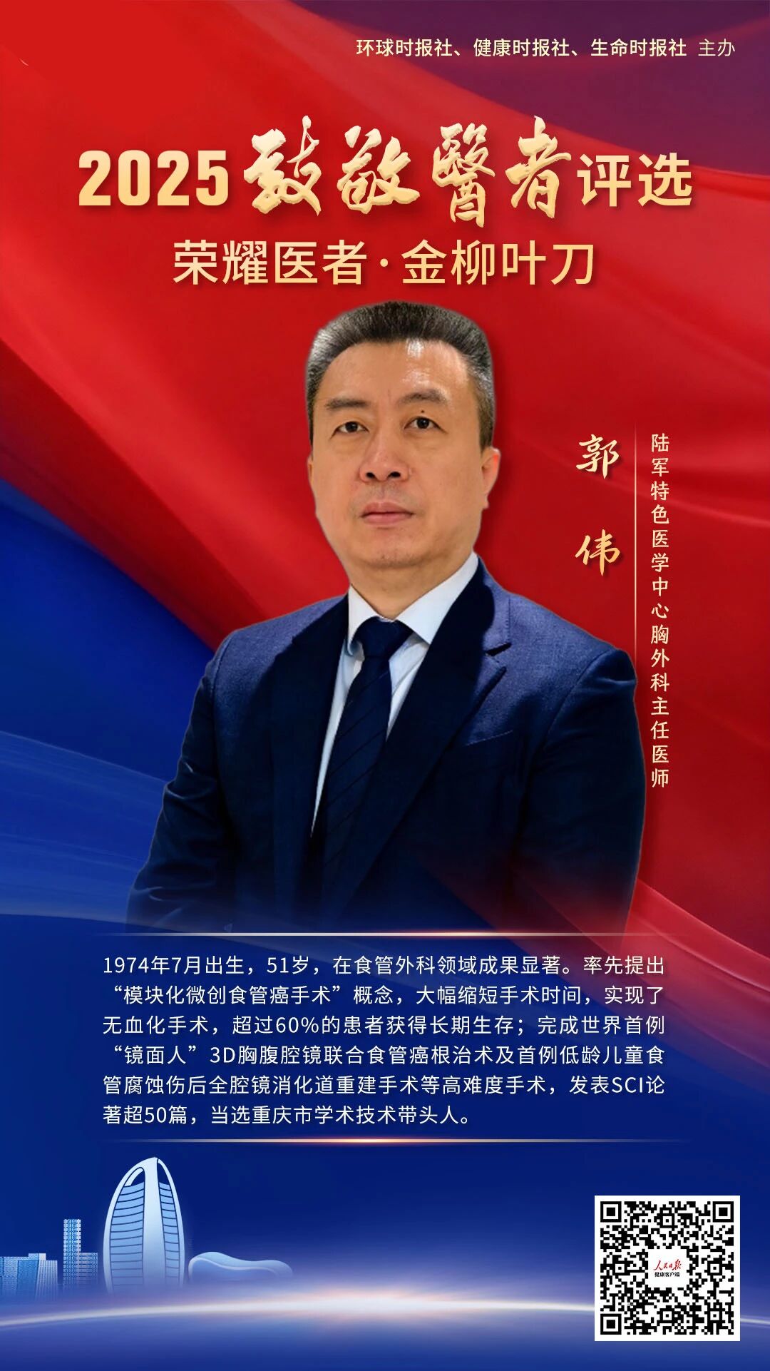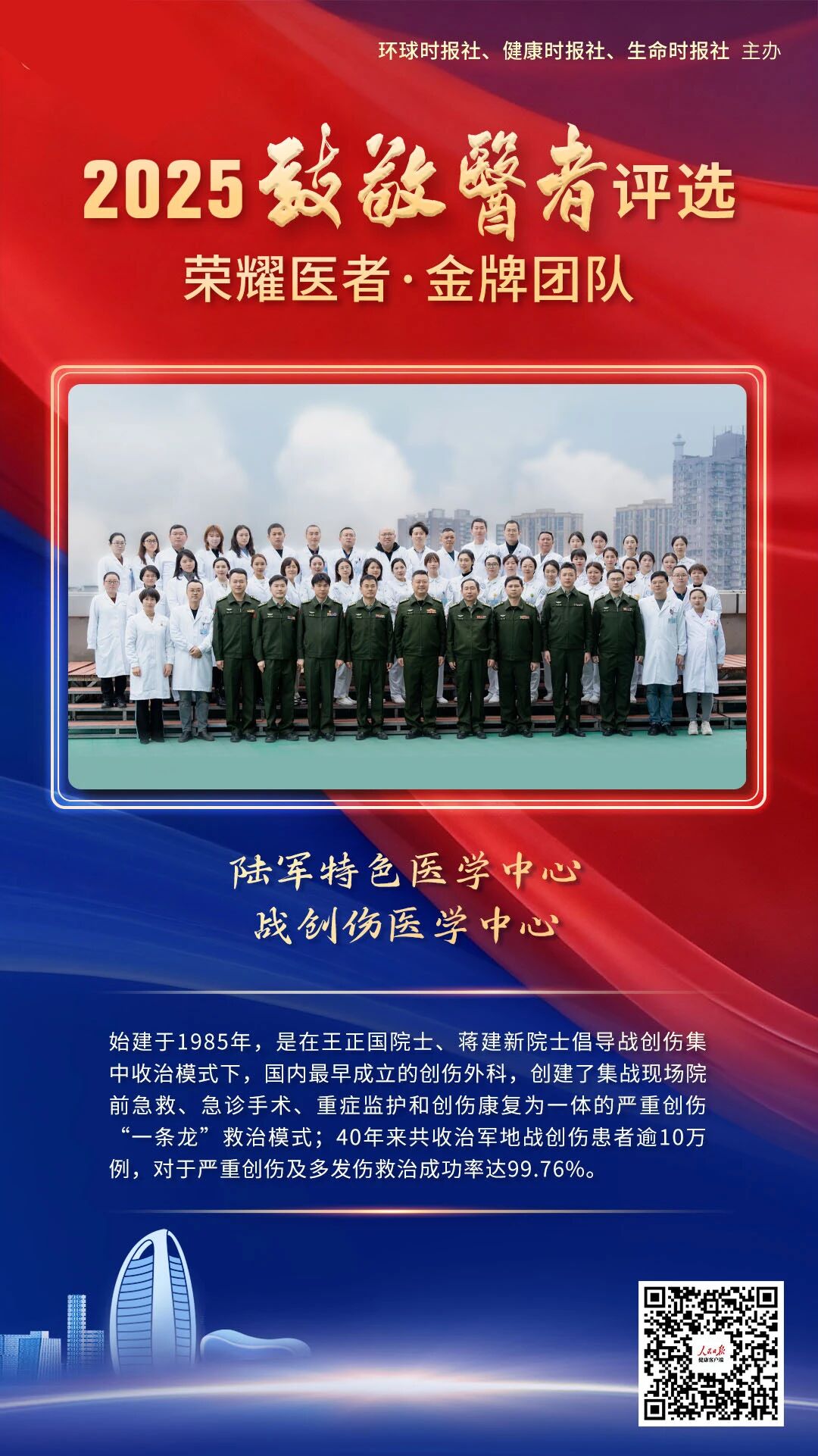 为弘扬“敬佑生命、救死扶伤、甘于奉献、大爱无疆”的精神,增强医务人员的职业荣誉感、营造尊医重卫的良好风气,11月28日,由环球时报、健康时报、生命时报联合主办的2025“致敬医者”评选盛典在人民日报社报告厅举行,现场揭晓了“国之名医”“荣耀医者”两个榜单结果。 陆军军医大学陆军特色医学中心(大坪医院)在“荣耀医者”评选中获评3项荣誉: 战创伤医学中心费军团队获“金牌团队奖” 胸外科主任医师郭伟获“金柳叶刀奖” 呼吸与危重症医学科主任医师李力获“学术创新奖” 以硬核实力与仁心大爱 充分彰显中心的红医风采和医者担当