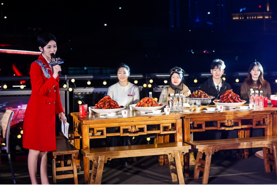 “夜嗨”挑动青春律动的狂欢节拍。有“不夜九街”“鎏嘉码头”霓虹闪烁,南滨路、紫薇路文艺惬意,李子坝的防空洞酒吧独具特色“别无分店”,更有音乐节的强劲音浪裹挟多巴胺,为深夜注入最强劲的精神活力。现场以乐队表演的形式,让观众们亲身体会重庆夜晚的律动节拍。 烟火为媒,解锁重庆夜间美食密码 活动现场,文旅推介官、金牌导游还为大家深入讲解“渝味360 碗”美食,并为观众们送上精美的“渝味360 碗”画册。
