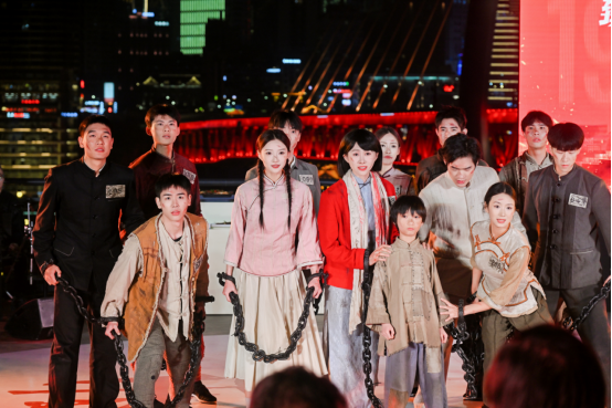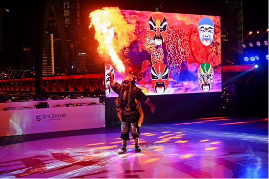 “夜演”演绎了古今对话的文艺盛宴。无人机表演虚实交融,川剧和京剧韵味悠长,舞台剧、音乐会与山水实景演出各具风情,铜梁龙舞尽显恢宏,文艺气息在夜色中流淌。现场展示的大型红色历史舞台剧《重庆1949》精彩片段、川剧变脸喷火表演等,让观众连声赞叹。