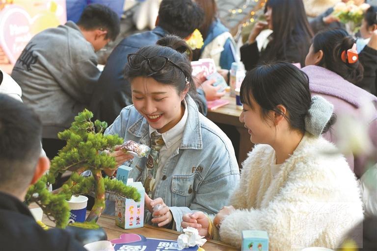在趣味打卡任务环节,青年们更是展现出了极高的默契与协作能力。他们携手找到“从你的全世界路过”影视取景点位,为彼此拍照打卡,笑容在镜头中定格成最美的风景。 山城巷的浪漫邂逅 记忆馆、玻璃栈道……山城步道上留下了青年们的足迹与欢声笑语。 趣味打卡任务环节同样精彩纷呈。青年们找到“山城步道”主题标识,拍摄下清晰呈现“山城步道”四字的双人合影,仿佛在向世界宣告他们的相遇与陪伴。在“灯笼街”景观区,他们更是入镜互动,拍摄出一张张充满创意的照片。 大家在打卡互动中,增进了彼此之间的信任与理解。 烤肉派对上的热情“表白” 傍晚时分,两组青年于山城巷瓦座汇合,开启音乐烤肉派对。