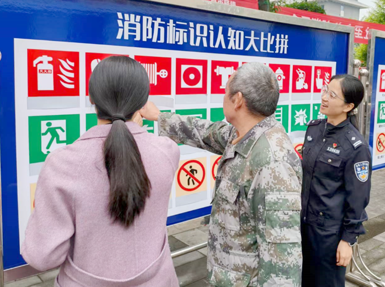 讲解消防器材 社区宣传接地气:精准科普知识入脑入心 11月17日,白市驿派出所联合镇政府、消防救援站、松岭社区,以“提问互动+器材演示+趣味活动”打造沉浸式宣传:通过“电瓶车进电梯是否该阻止”等生活化提问引发共鸣,再系统讲解用火用电规范、灭火器使用、自救逃生等知识;“趣味消防套圈”“消防标识大比拼”等活动更是让居民在欢笑中巩固知识,同时民警还同步发放反诈手册,实现“消防+反诈”双科普。