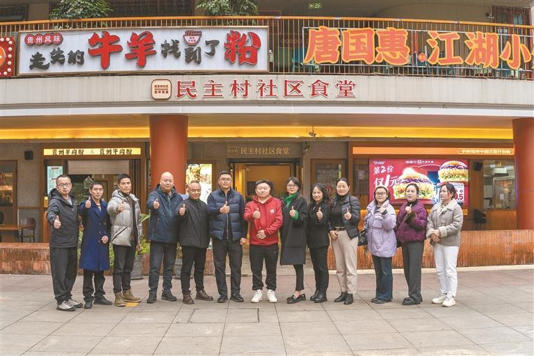 12月3日下午,由重庆晚报主办的“社区食堂创新实践观摩交流会”在九龙坡区民主村社区食堂举行。作为全市率先引入智能烹饪机器人的社区食堂,民主村食堂敞开后厨,向来自中心城区十余家代表性社区食堂的负责人,展示了一场“科技+民生”的运营实践。本次活动亦是重庆晚报“重庆社区食堂调查”系列报道的深化,旨在搭建行业交流平台,推动社区食堂可持续、高质量发展。 此次与会的十余位食堂负责人分别来自:冉家坝社区、石油路社区、学府路社区、邢家桥社区、马家堡社区、龙泉路社区、浮图关社区、新胜村社区、大兴社区等。这些食堂的经营模式多元,涵盖了自助餐、小碗菜、套餐,以及中央厨房统一配餐、称重计价等多种形式。