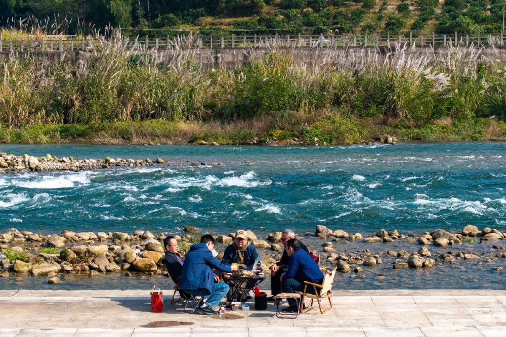 ▲11月27日,云阳县堰坪镇刘家坝广场,市民在河边喝茶休憩。经过系统整治后的长滩河,河道景观焕然一新。记者 尹诗语 摄/视觉重庆