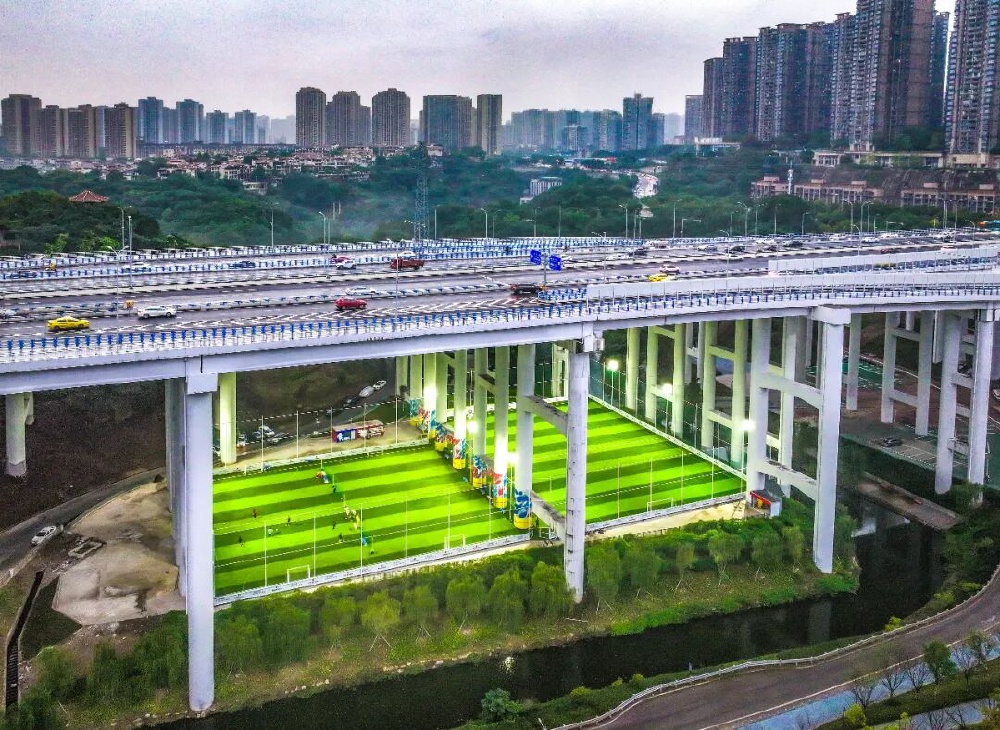 ▲11月3日,九龙坡区五台山足球公园,足球爱好者正在桥下的球场内运动热身。记者 郑宇 摄/视觉重庆