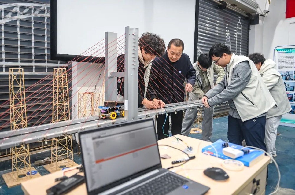 ▲11月17日,重庆交通大学南岸校区,学生正在老师指导下进行桥梁传感器布设等操作。记者 郑宇 李志峰 摄/视觉重庆