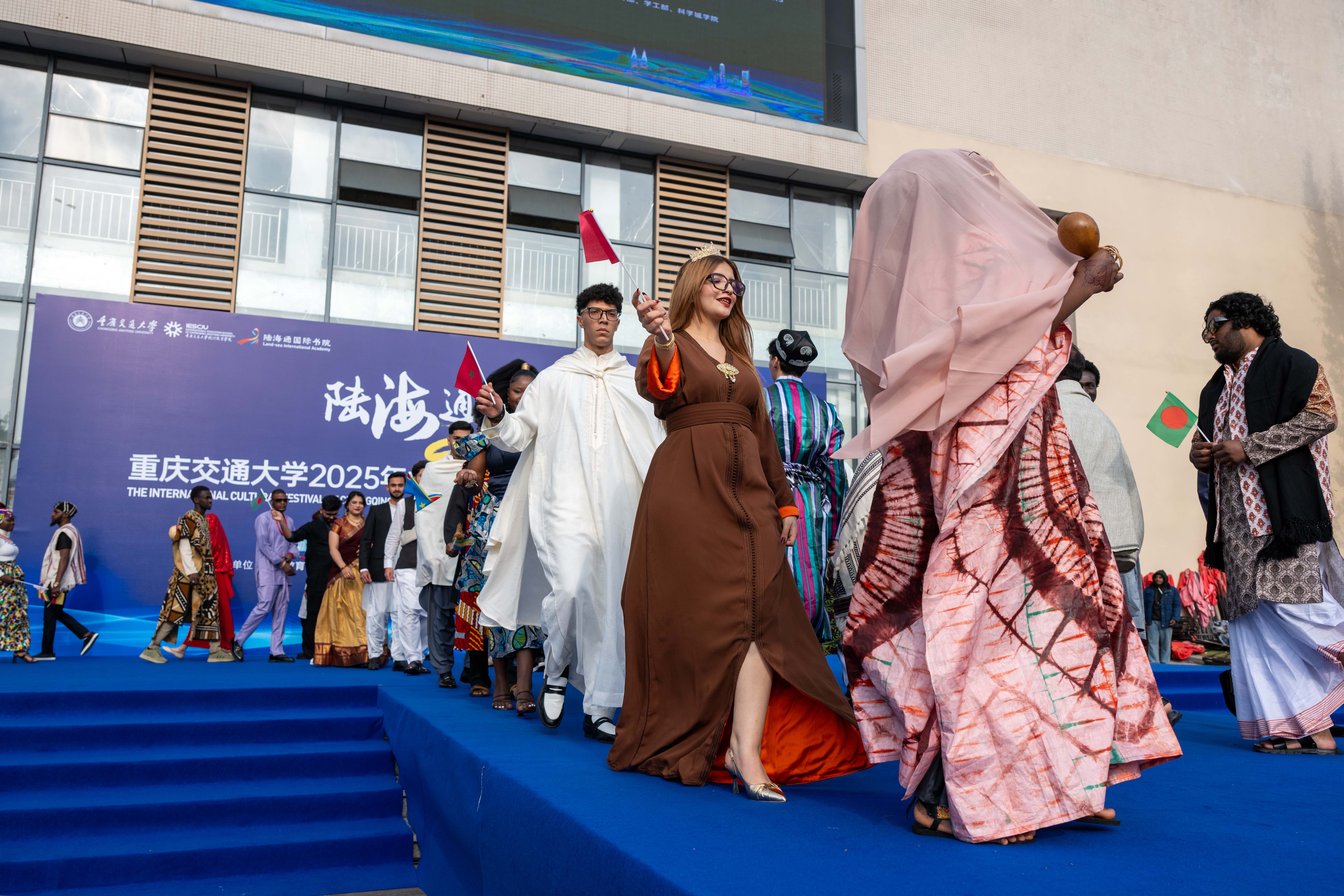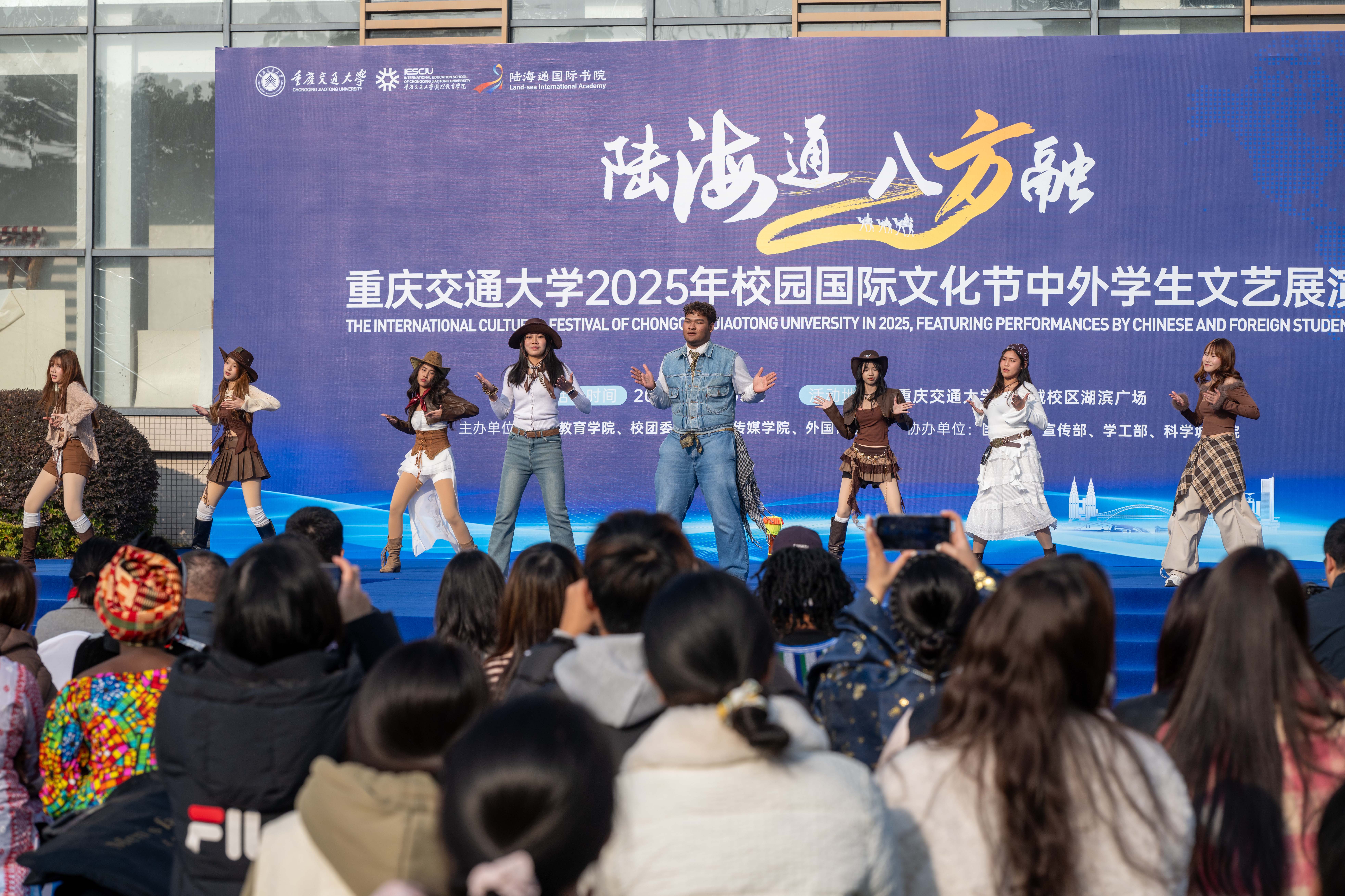 重庆交通大学2025年国际文化节中外学生文艺展演于12月5日在科学城校区民族团结广场举行。来自中国、泰国、贝宁、孟加拉国、哈萨克斯坦、摩洛哥、越南、印度尼西亚、刚果(金)、赞比亚等20余个国家的学生参与了演出。