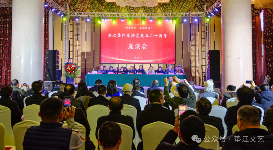 采风活动结束后,在重庆国能国际大酒店举行了垫江作协成立二十周年座谈会。 垫江县政府副县长杨岸鸿代表县委、县政府致辞。他充分肯定了县作协二十年来取得的显著成绩,表示此次活动将促进川渝文化深度交流与融合,希望更多作家用文字记录垫江时代变迁、书写人民心声。 垫江县作协主席黎美剑作了工作报告,作协20年来成果显著:会员队伍壮大至114人,打造“牡丹诗会”品牌,扶持了12个基层文学社团,出版书籍102本、获各类奖项1099个,省级以上刊物发表作品超1.4万篇。