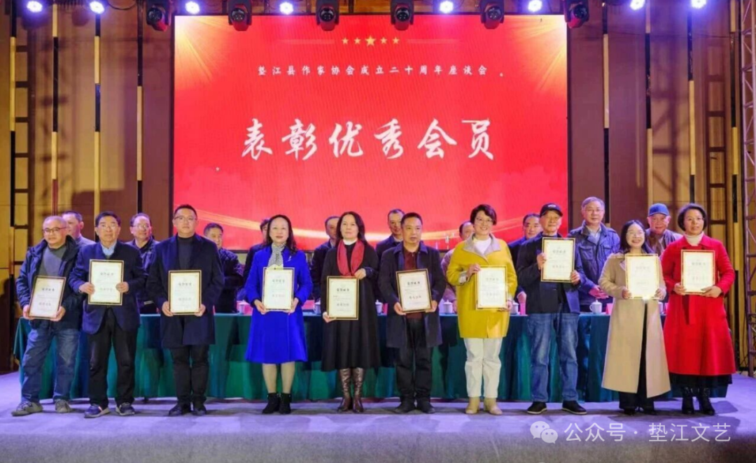友好区县作协主席纷纷致辞。涪陵区作协主席周烽以“巴渝情深”表达兄弟情谊,倡议共建“长江上游文学走廊”;广安市作协主席侯立新提出“渠江絮语润心田”,期待深化川渝作家互访机制;达州市作协主席邹清平祝“秦岭之南亦闻牡丹香”,愿携手讲好巴蜀故事。 大会对近年来在国家级、省级刊物发表作品或获得重大奖项的41名优秀垫江作协会员进行了表彰。