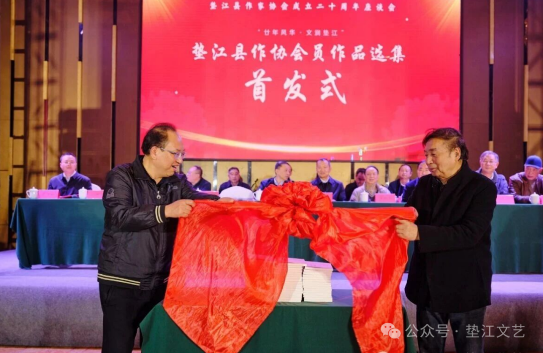 重庆市作协组联部主任陈飞与县作协主席黎美剑、新民镇党委书记吴定飞签订“重庆市新时代文学实践点”三方合作协议,标志着“重庆市新时代文学实践点”正式落户垫江新民镇。 在《廿年风华·文润垫江——垫江县作家协会会员作品选集(2005-2025)》首发式上,重庆市作协原主席黄济人、垫江县政协副主席刘洪君共同为作品选集揭幕。该书是垫江作协成立二十年来文学发展成果的全景式呈现。