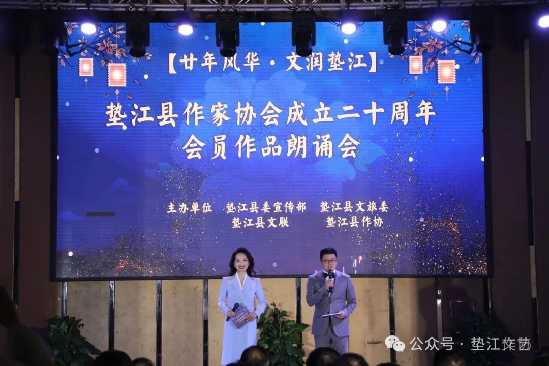 座谈会后,举行了垫江县作协成立二十周年会员作品朗诵会。朗诵会以“廿年风华·文润垫江”为主题,通过诗歌朗诵、音乐演唱、舞蹈表演等艺术形式,全方位、多角度展现垫江作协二十年来扎根沃土、笔耕不辍的丰硕创作成果。