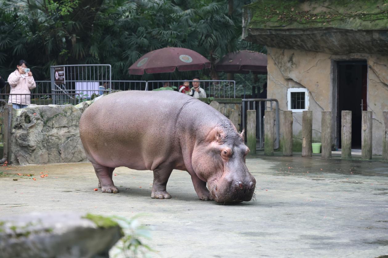 重庆动物园河马 “原来,河马在水里不是在游,而是在走啊!”有小朋友称,河马水中功夫可真厉害! 据介绍,重庆动物园河马以嫩牧草、胡萝卜、西瓜为食,搭配营养颗粒饲料;厚达数厘米的皮肤和皮下脂肪,以及红色黏稠分泌物等是其水中生活的“保护屏障”。 “快看,大犀牛。”来到犀牛馆,滕明生介绍,白犀是现存五种犀牛中体型最大的,也是现存第二大陆地动物。目前,重庆动物园展出的白犀有3只。 它头上的角是重要的防御武器,非法盗猎和栖息地的破坏,导致了野生犀牛的濒危。科普员老师特别强调,犀牛角与象牙均属禁止贸易物品,不能进行买卖。 “重庆动物园的大象‘波波’在全国都很有名气。”来到大象馆时,滕明生介绍,“波波”是一只亚洲象,但是它的体重最重时达到了6吨多,让它在全国的亚洲象中闻名。