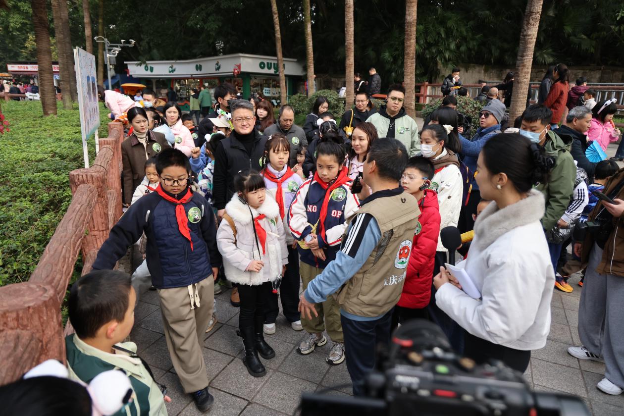 重庆市南岸区龙门浩隆平小学教育集团活动大合照 据悉,本次活动由重庆动物园与重庆市南岸区龙门浩隆平小学教育集团联合举办,旨在推动企业社会责任与青少年生态保护的深度融合。 活动中,在重庆动物园科普老师滕明生的带领下,亲子家庭们走进河马、犀牛、大象展区,去探寻它们的“生存密码”。