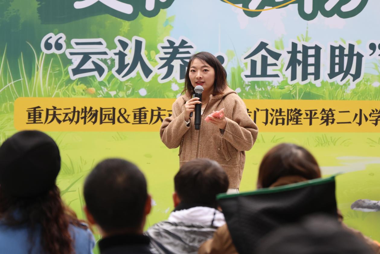 重庆动物园大象馆 活动现场,重庆动物园科普主管田小芳还为亲子家庭们分享了“双重喜庆”的独特性格,介绍了大熊猫出生的幼崽体重,以及大熊猫的生存环境、生活习性等。
