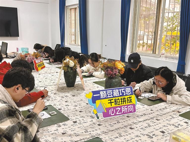 活动伊始,青年们凭报名信息签到领取拼豆物料包,在手工老师的指导下,快速掌握豆粒摆放、模板使用及熨烫安全技巧。
